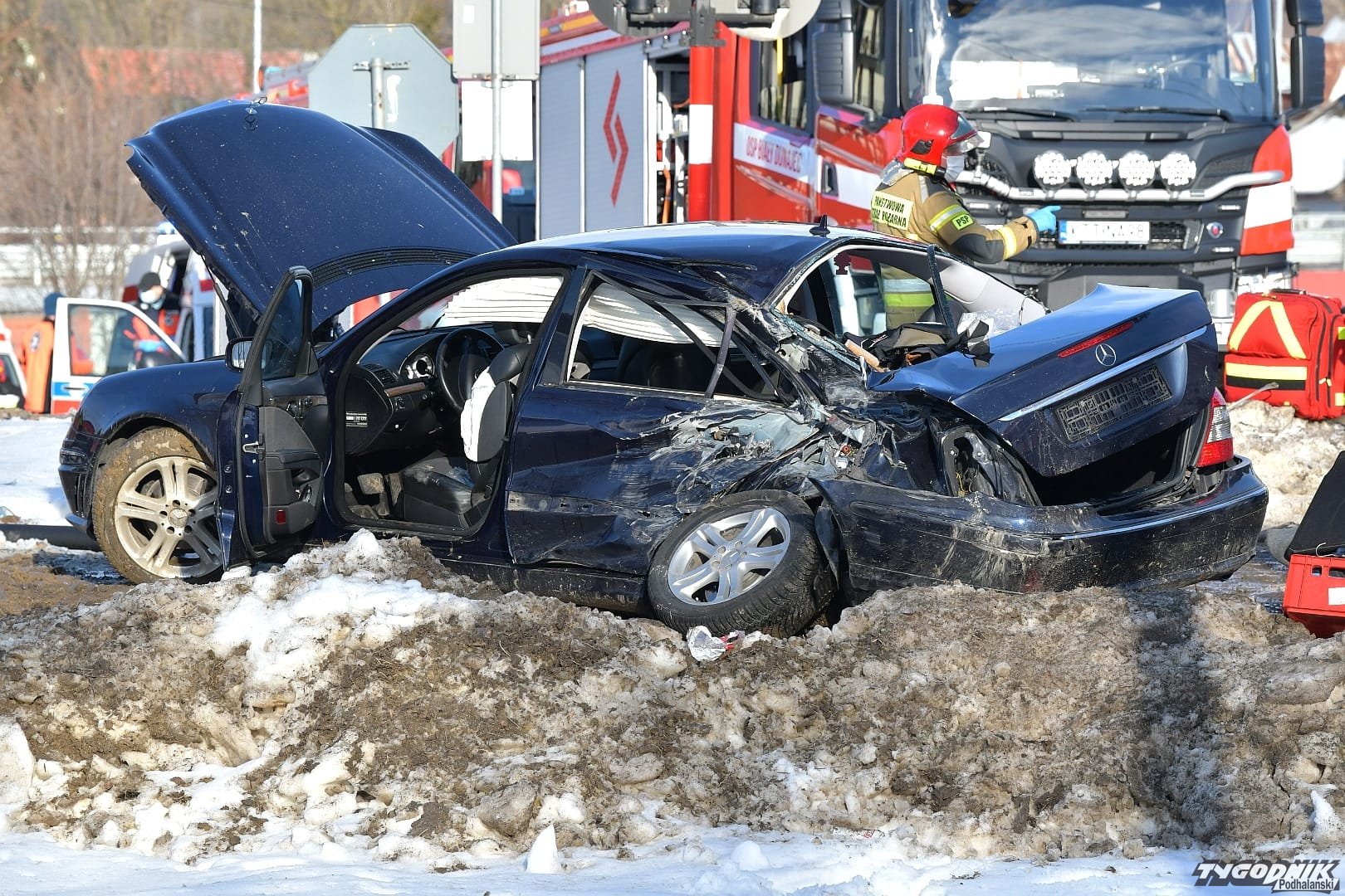 - Mercedes z województwa dolnośląskiego wjechał na przejazd kolejowy na czerwonym świetle. W samochodzie jechały cztery osoby. Pociąg uderzył w tył pojazdu. Siedzącym z przodu nic się nie stało. Ranne są dwie osoby, które jechały z tyłu. Obrażenia odniosła też trzecia osoba. Kierowca był trzeźwy. Twierdzi, że oślepiło go słońce - informuje Roman Wieczorek, rzecznik prasowy zakopiańskiej Policji. Ruch pociągów na trasie z Zakopanego do Nowego Targu może być przywrócony dopiero za kilka godzin. Ostatecznie jedna z poszkodowanych osób zostanie w szpitalu.