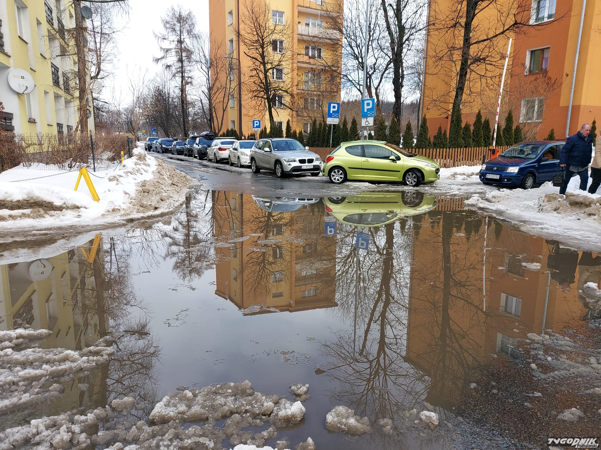 Najpierw duże opady śniegu, teraz odwilż i wielkie kałuże wody.