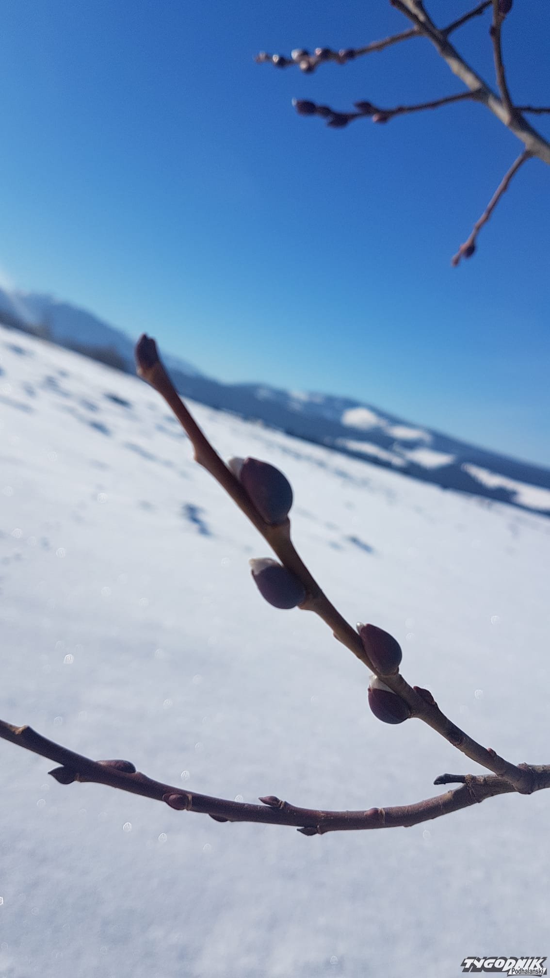 W Zakopanem w poniedziałek termometry pokazywały 8 st. C., dziś 7. Nic więc dziwnego, że mimo wciąż grubej pokrywy śniegu obserwujemy pierwsze oznaki zbliżającej się wiosny. Koty zaczynają się "marcować", wczoraj wieczorem pierwszy koncert urządziły sobie kosy, a na drzewach pojawiają się bazie. Nie znaczy to, że zima powiedziała już ostatnie słowo. W czwartek początkowo będziemy mieć wietrzną i deszczową wiosnę - możliwe są nawet burze, ale wieczorem temperatura ma spaść i może padać śnieg.