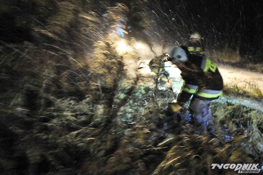 Strażacy usuwają drzewo, które przewróciło się na drogę w Bielance. Czytelnicy alarmują, że podobna sytuacja jest w Rdzawce.