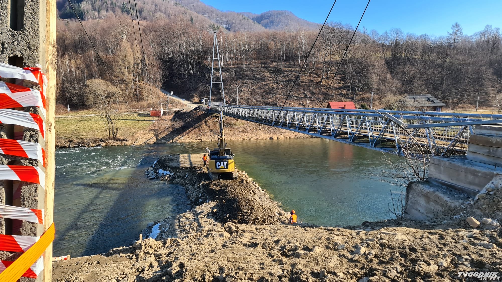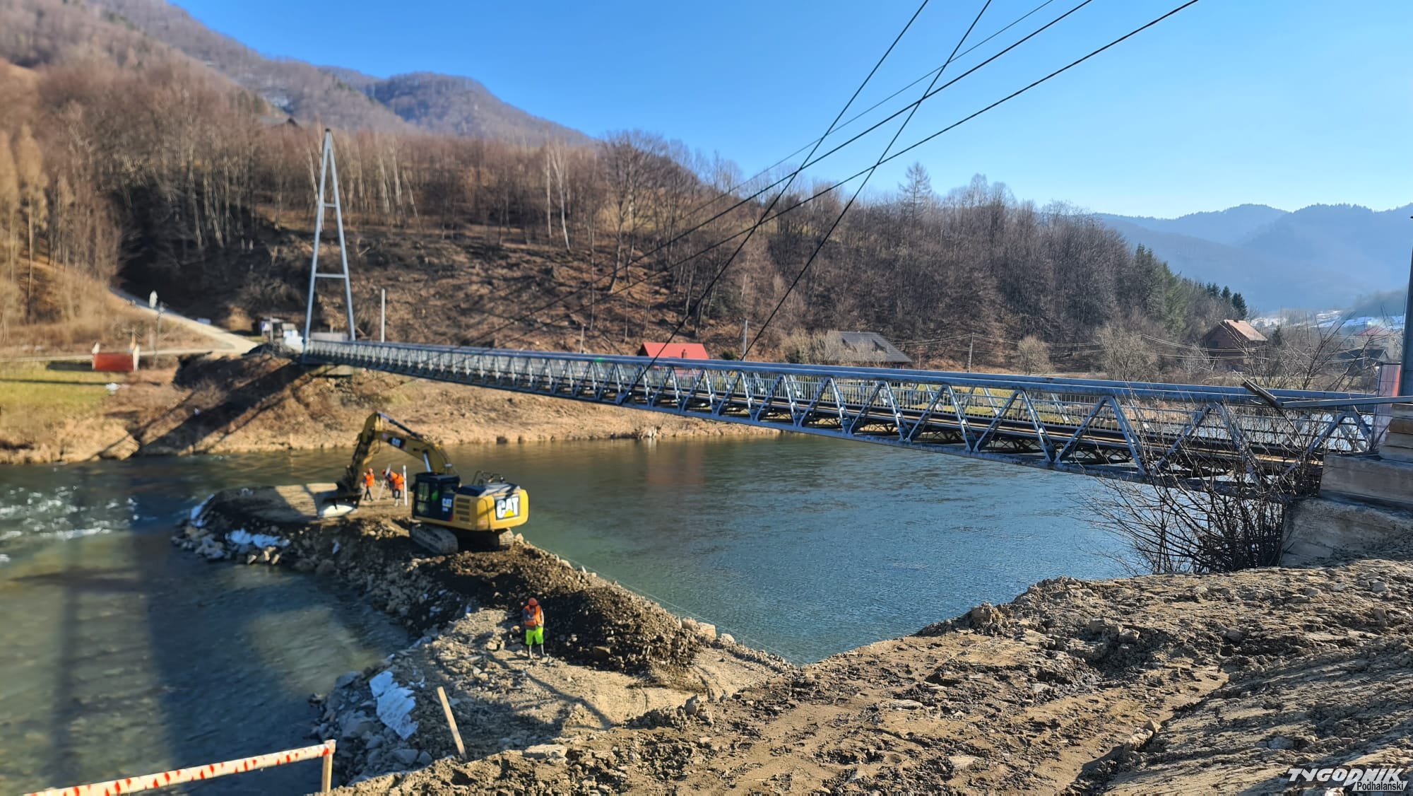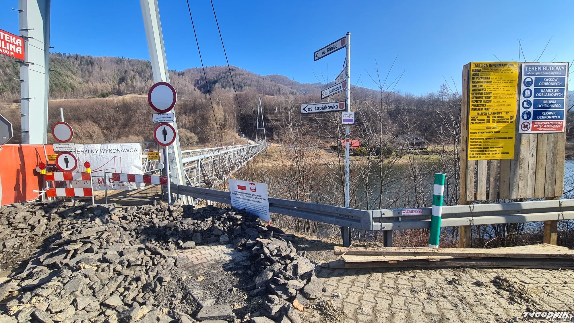 Pierwsza łopata pod budowę mostu na osiedlu Brzegi w Tylmanowej została wbita w październiku ubiegłego roku. Niedługo po przeprawie nie będzie śladu. W poniedziałek rozpoczęła się rozbiórka starego mostu wiszącego, który został zbudowany w 1967 r. Eksperci twierdzili, że jego stan techniczny był na tyle fatalny, że nie nadawał się już do remontu. Obowiązywał na nim ruch jednokierunkowy, do tego mogły jeździć auta o masie do 2,5 ton.