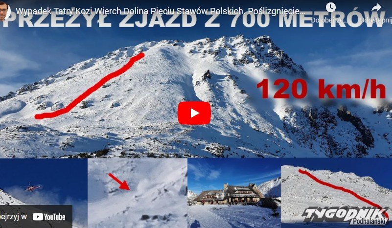 Szymon Zduńczyk kręcił film w Dolinie Pięciu Stawów. Zarejestrował trzy wypadki. Jeden z turystów spadł żlebem 700 metrów z prędkością dochodzącą do 120 km na godz. Przeżył. Wypadek miał miejsce w styczniu tego roku. Zobaczcie WIDEO.