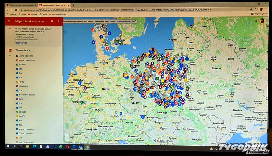 Możecie na mapie Google umieszczać swoje noclegi i inną pomoc dla uchodźców