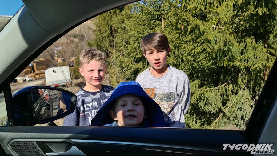 Razem z mamą i trzema siostrami uciekli z Żytomierza. Pani Danusia z Poręby przygarnęła ich pod swój dach. Wieziemy im piłkę, bo lubią grać, a boisko mają niedaleko.