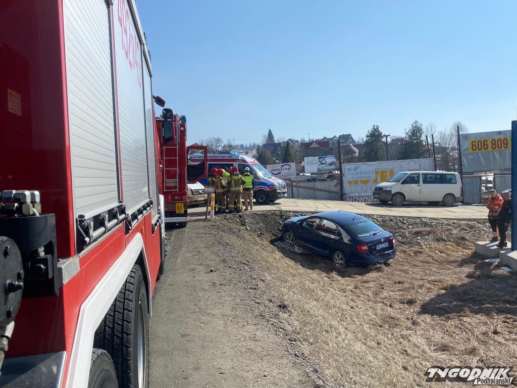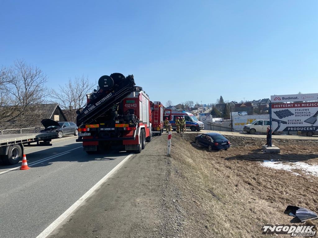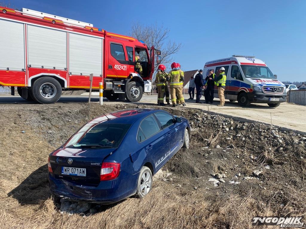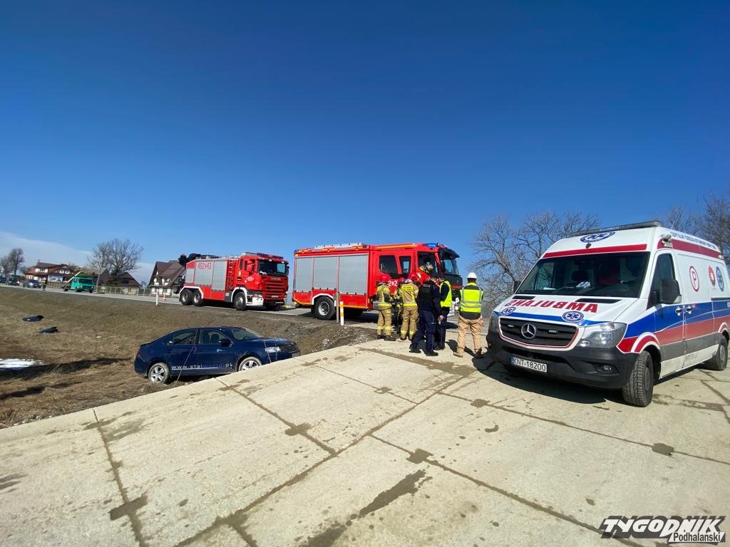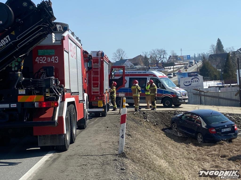 Wypadek zdarzył sie po 11 w rejonie wjazdu na budowę nowej zakopianki w Rdzawce. Kierowca auta osobowego próbował skręcić w drogę lokalną, gdzy samochód został uderzony z tyłu przez kolejny pojazd. Uderzone auto wypadło z drogi. Na miejscu są służby ratunkowe, strażacy JRG Rabka policja i karetka pogotowia. Ruch odbywa się wahadłowo, tworzą się korki.