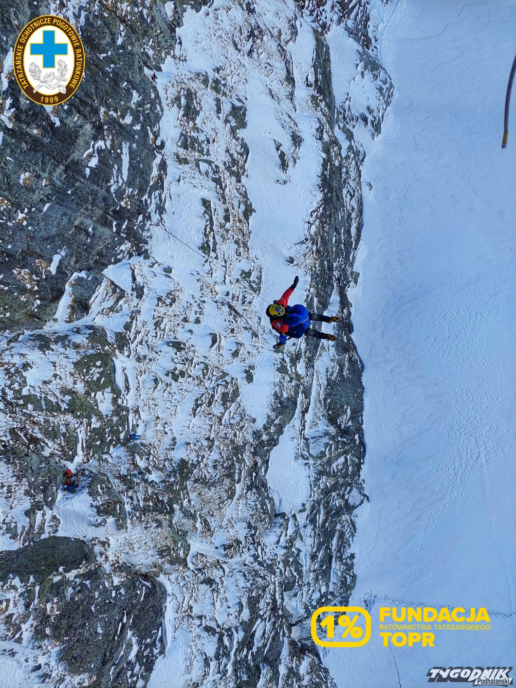 Ratownicy TOPR przetransportowali do szpitala taternika z urazem głowy i potłuczeniami ciała.