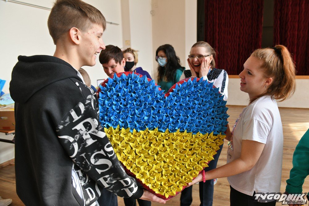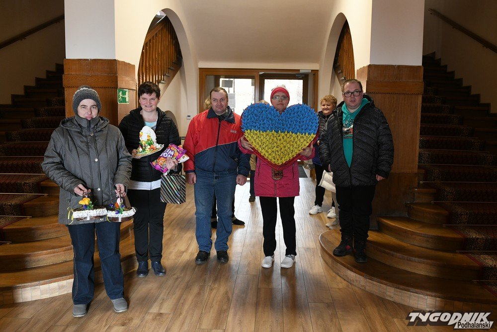 Chodź sami mają wiele problemów i często potrzebują wsparcia, żeby w miarę normalnie funkcjonować, postanowili okazać solidarność z młodzieżą z Ukrainy, która przebywa w Ośrodku ZNP na Ciągłówce w Zakopanem. W ramach wolontariatu podopieczni ośrodka na Kamieńcu wykonali olbrzymie serce w kolorach ukraińskiej flagi. Dołączyli do niego słodycze i owoce. W środę przekazali je uchodźcom przebywającym na Ciągłówce. Nie zabrakło wielkanocnych koszyczków, życzeń wytrwałości i zwycięstwa.