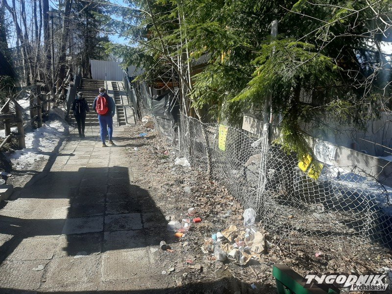 - Wczoraj przespacerowałem się od ulicy Strążyskiej przez Małe Żywczańskie do ulicy Tetmajera. To co zobaczyłem przy moście, to jedno wielkie śmietnisko i wstyd - alarmuje nasz czytelnik. Chodzi o przejście ażurowym mostkiem przerzuconym nad Białym Potokiem. Z jednej strony restauracja "Czarci Jar", z drugiej strony budowa. A między nimi sterty butelek, opakowań po napojach. Do tego adekwatny napis na ogrodzeniu "Zombi land".