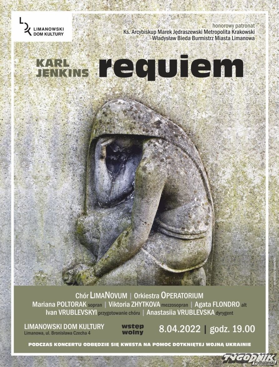 W piątek 8.04 "Requiem" Karla Jenkinsa wykonane zostanie w trakcie koncertu w Limanowskim Domu Kultury. Dzień później, w sobotę 9.04, również w Kościele Miłosierdzia Bożego na Wzgórzach Krzesławickich w Krakowie.