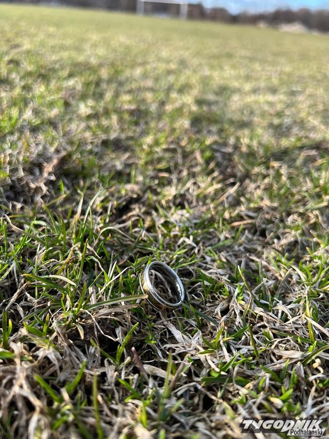 A może zguba należy do trenera lub sędziego? Pięknie błyszczała w marcowym słońcu na murawie.