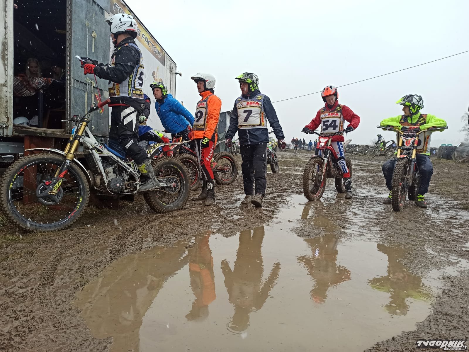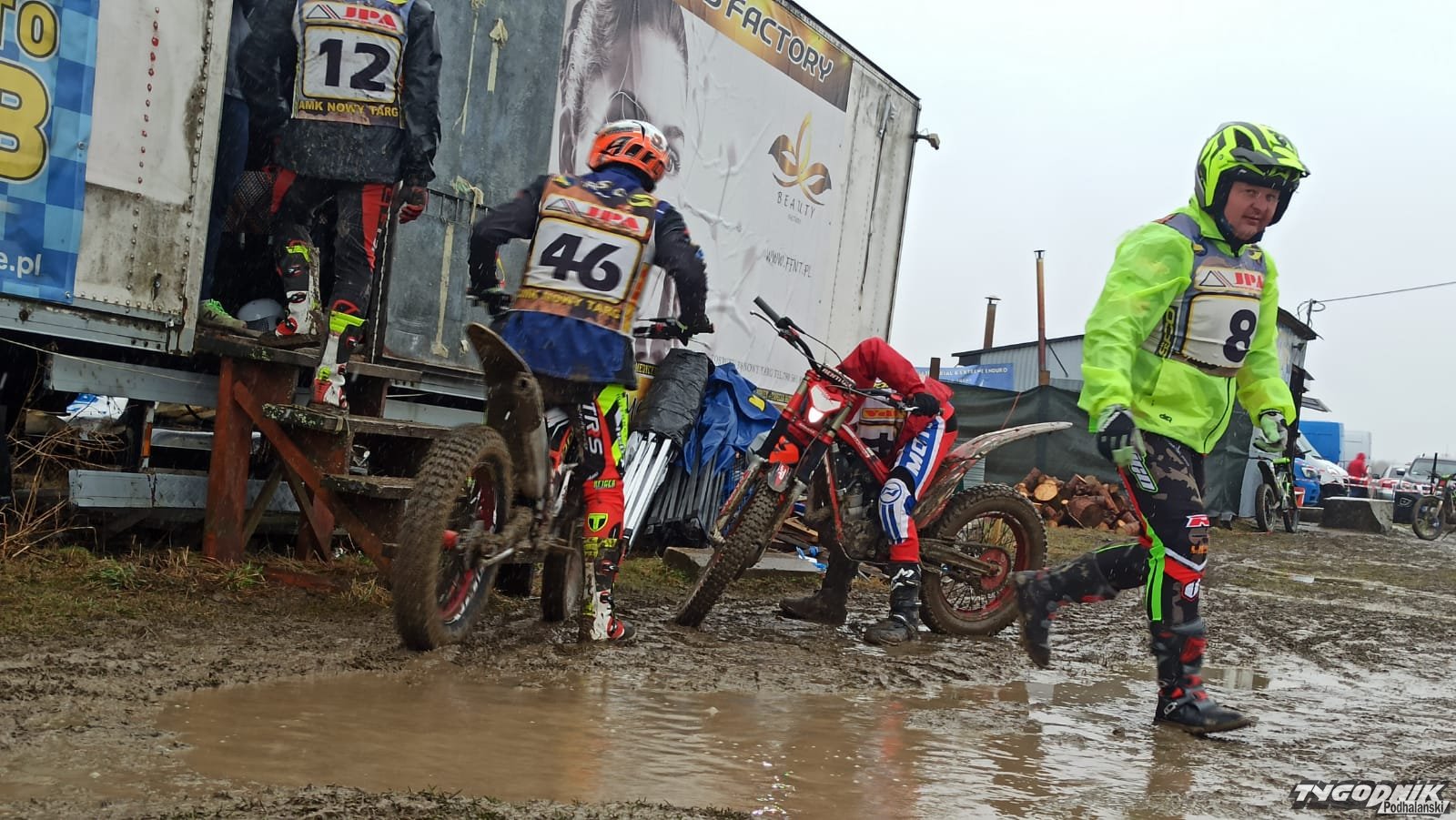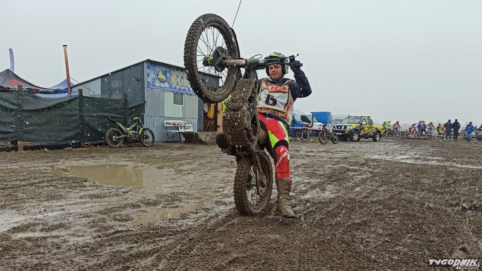 Tor zmienił się w grzęzawisko, ale zawodnicy nie narzekają.
