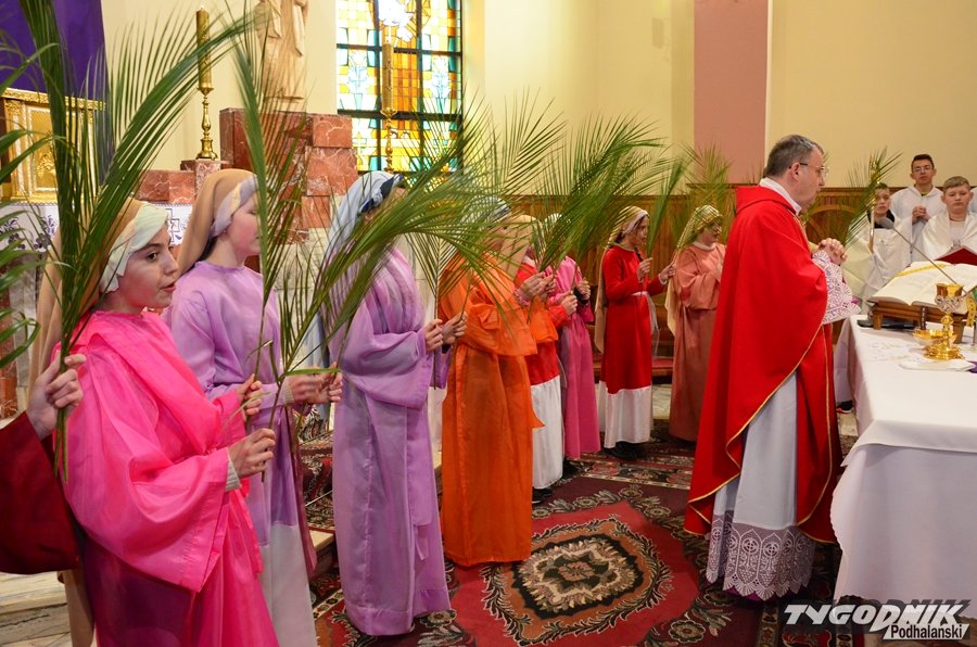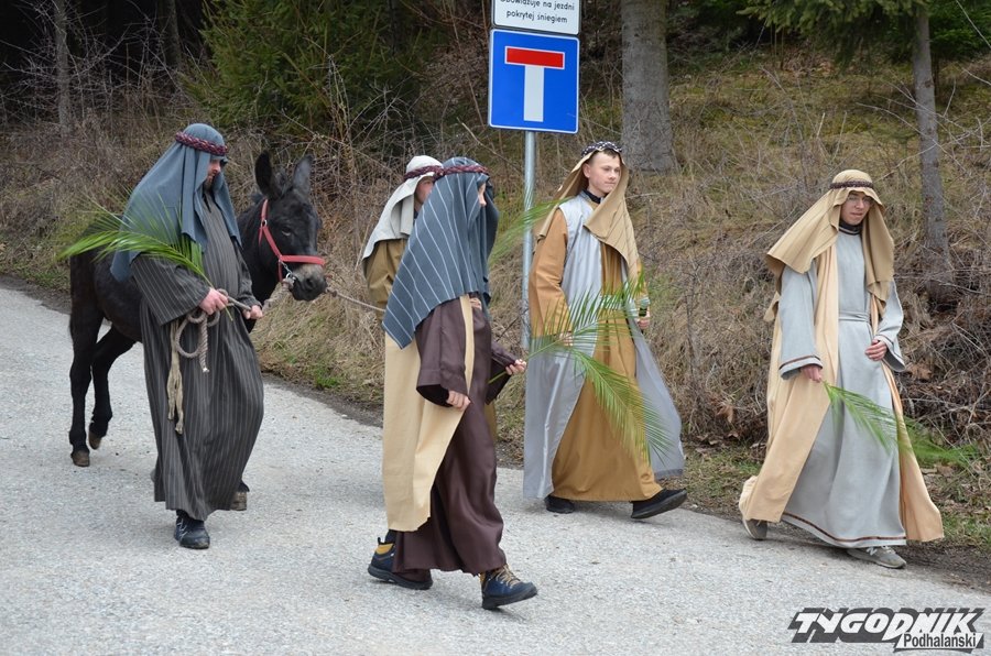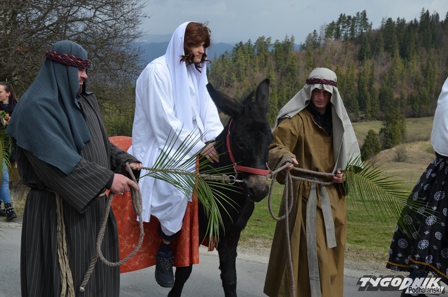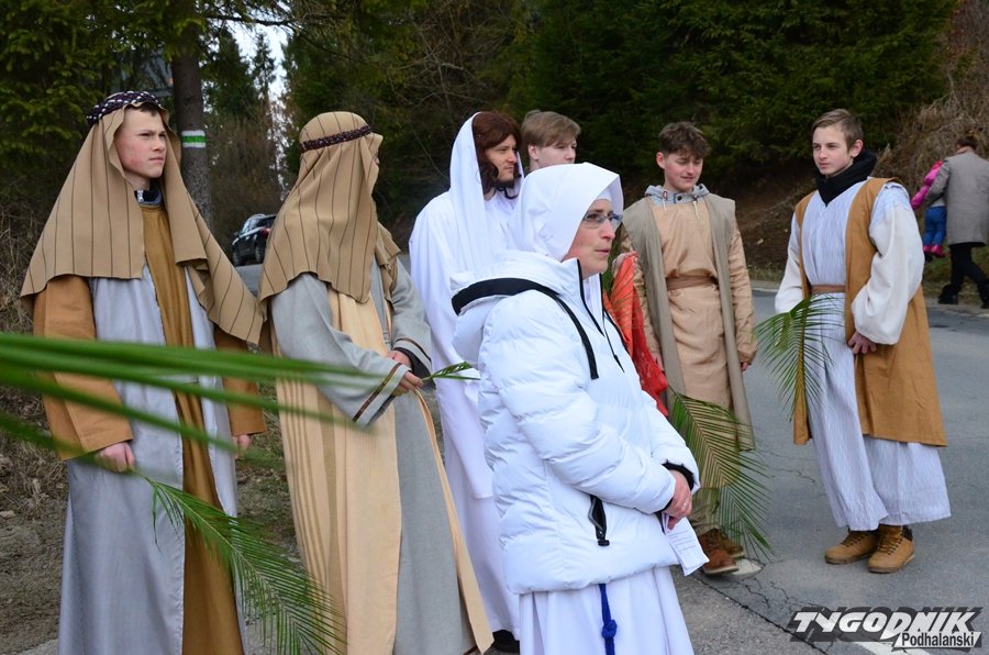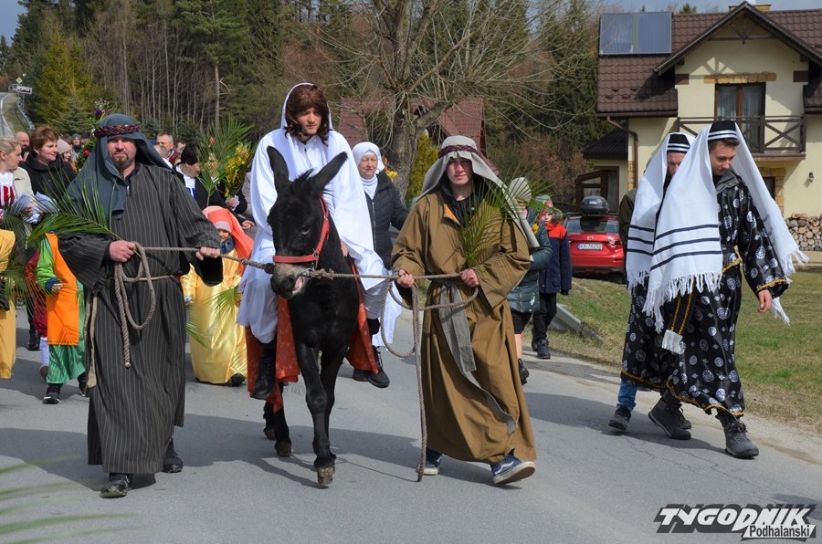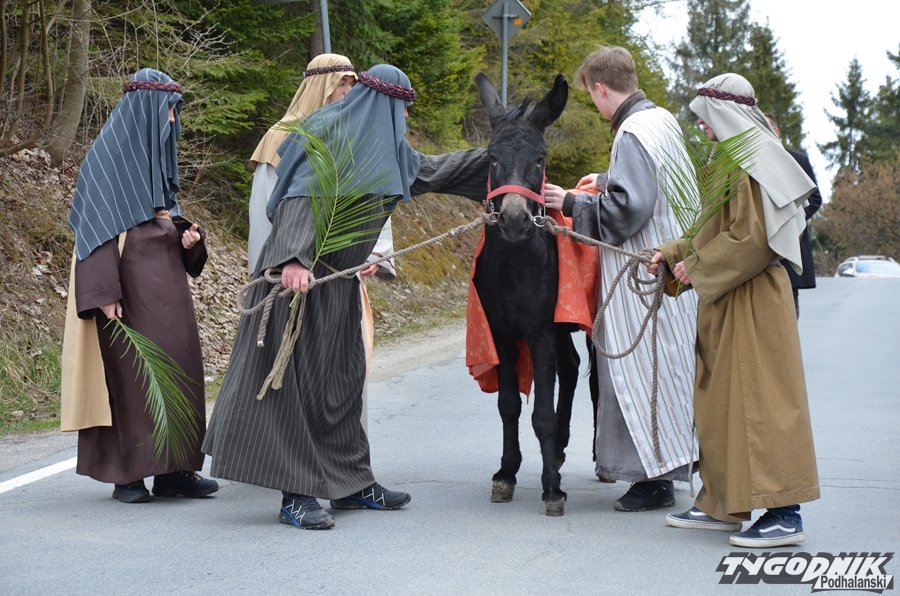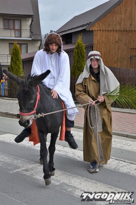 Przygotowania do tego wydarzenia trwały przez cały miniony tydzień. Dziewczęta ćwiczyły taniec z gałązkami palmowymi, a starsi chłopcy role uczniów Jezusa i żydowskich arcykapłanów. Tradycyjnie już w postać Pana Jezusa wcielił się starszy lektor Dominik Bryksy. I to jemu przypadło w udziale dosiadanie wypożyczonego ze Złotej osiołka.