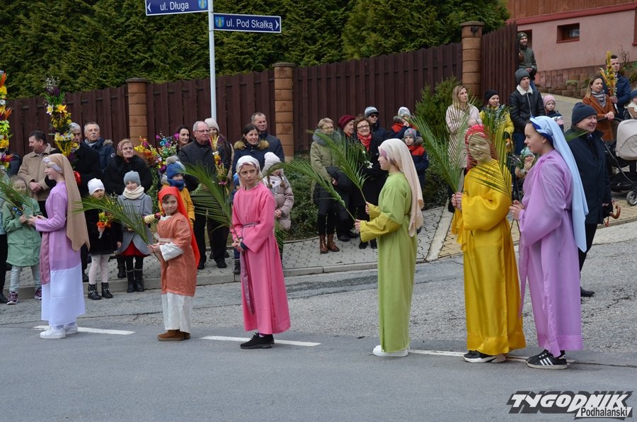 Punktualnie o godz. 10.30 spod klasztoru sióstr niepokalanek ruszyła ta roztańczona i rozśpiewana procesja. Najpierw nastąpiło przywitanie Pana Jezusa i jego uczniów, a następnie cały orszak z radosnymi okrzykami hosanna udał się do kościoła.