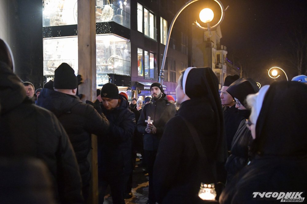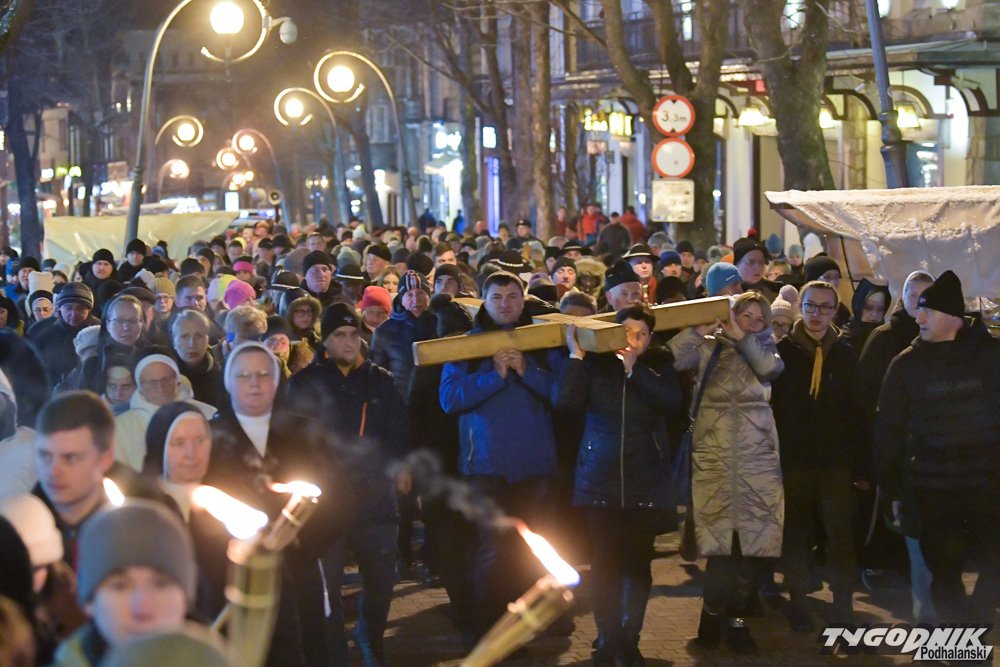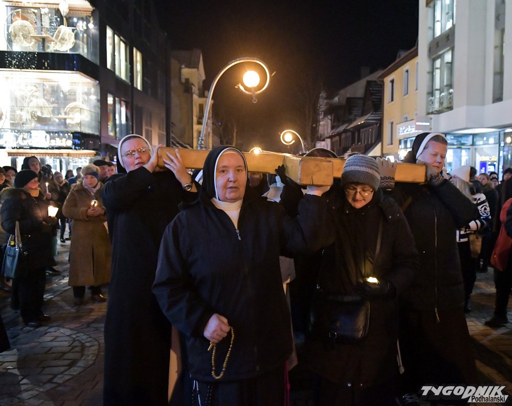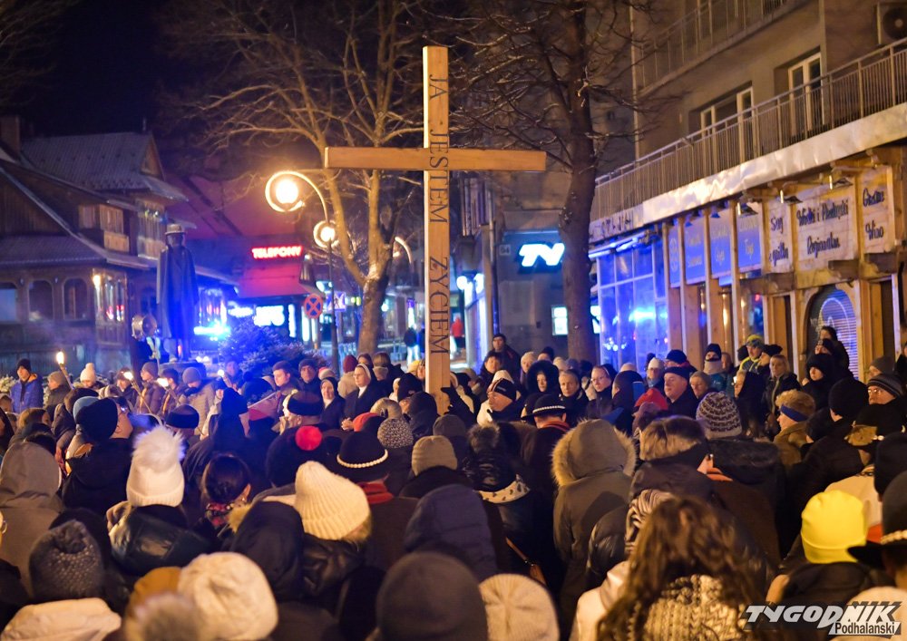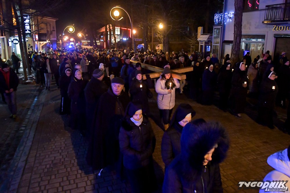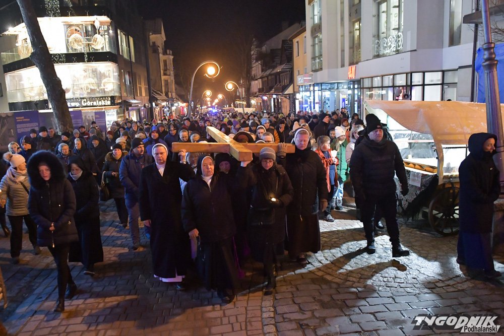 Tradycyjnie już Droga Krzyżowa rozpoczęła się po wieczornej Mszy Świętej w Sanktuarium Najświętszej Rodziny na Krupówkach. Setki wiernych przeszły przez deptak i ul. Zamoyskiego do Kościoła św. Krzyża.