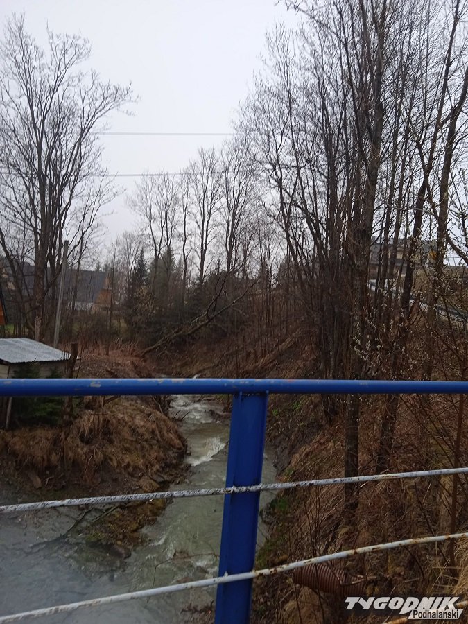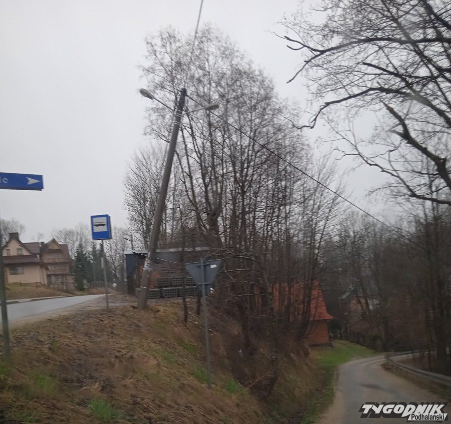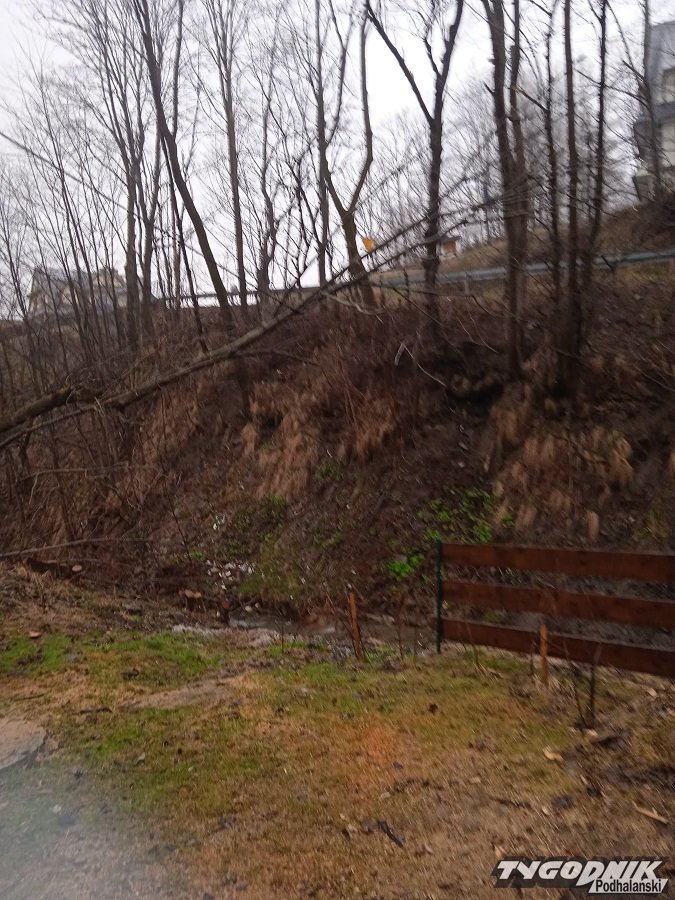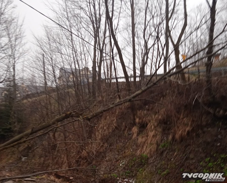 Rosnące nad potokiem w Dzianiszu drzewo uszkodziło linie elektryczną.