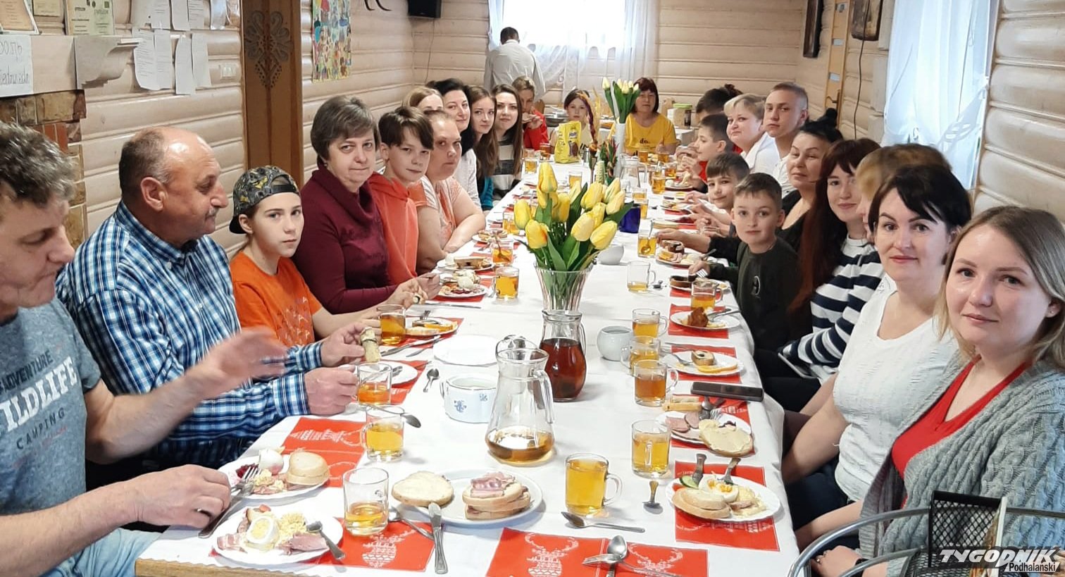 W Porębie Wielkiej swoich gości z Ukrainy na świąteczne śniadanie zaprosiła pani Danusia.