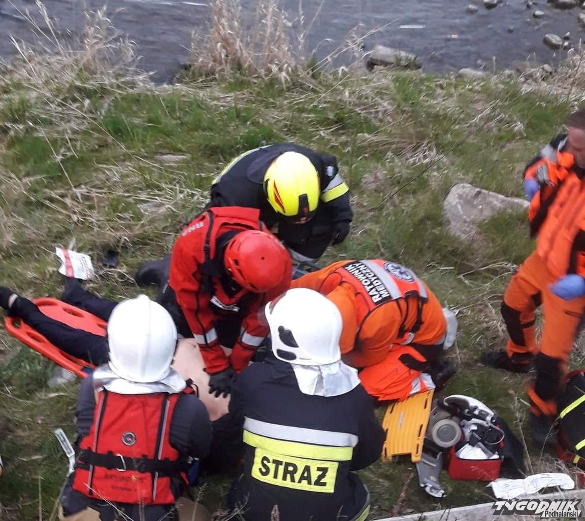Nieprzytomny mężczyzna płynął Dunajcem