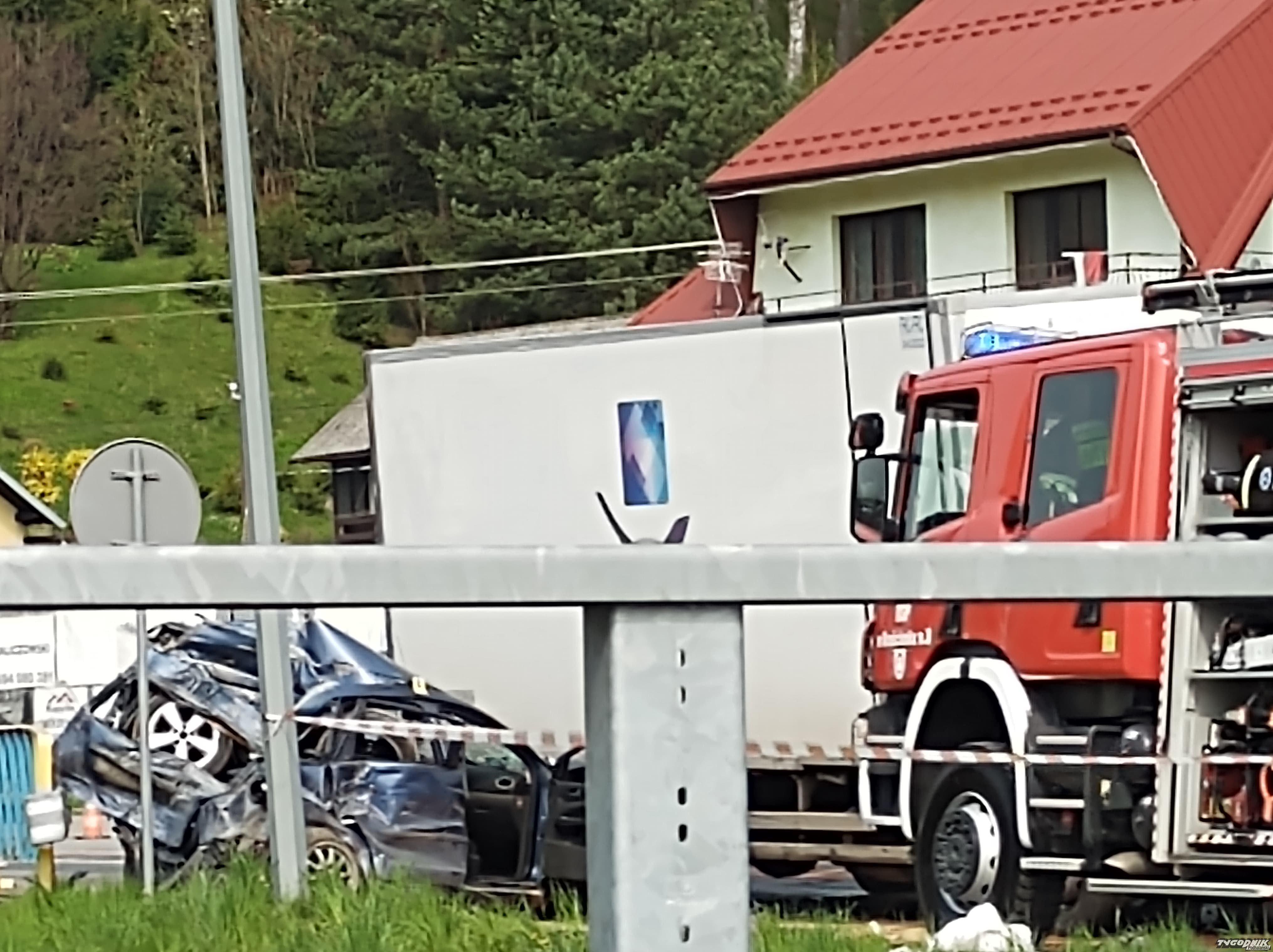 Zderzenie osobówki i ciężarówki na wjeździe do Krościenka