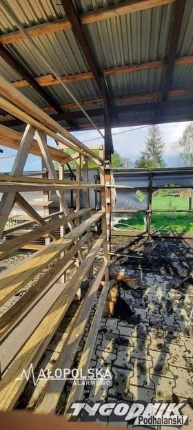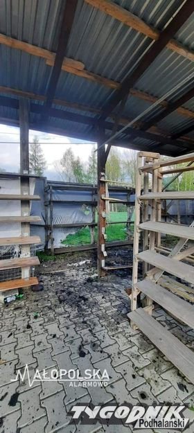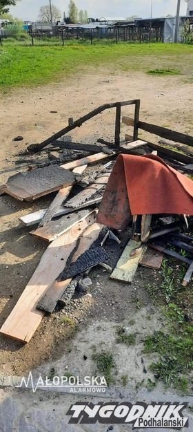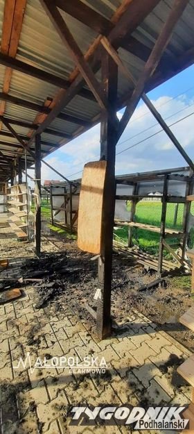 Pożar na targowisku w Jabłonce - zapaliły się drewniane stoiska handlowe.