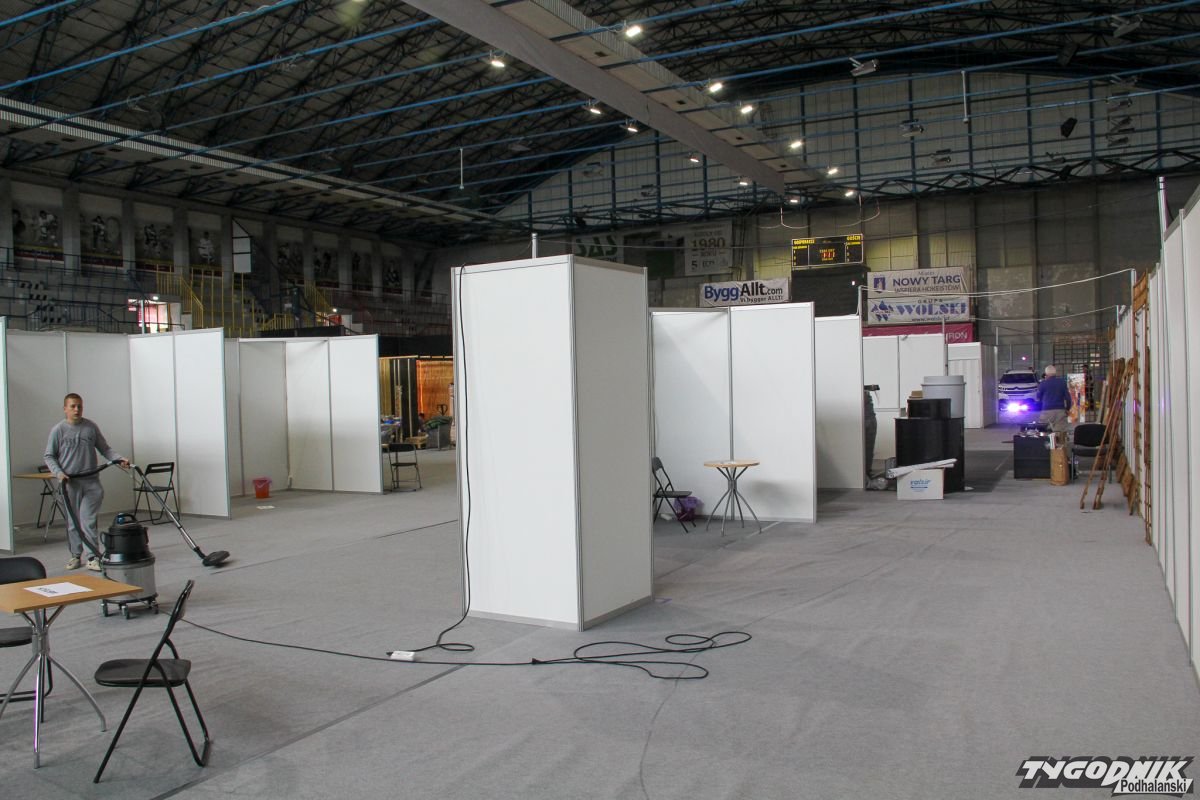 Miejsce tafli lodu zajęła już miękka wykładzina, a wystawowe stoiska stają zamiast bramek. W sobotę i niedzielę trwać tu będzie największa budowlana impreza na Podhalu.