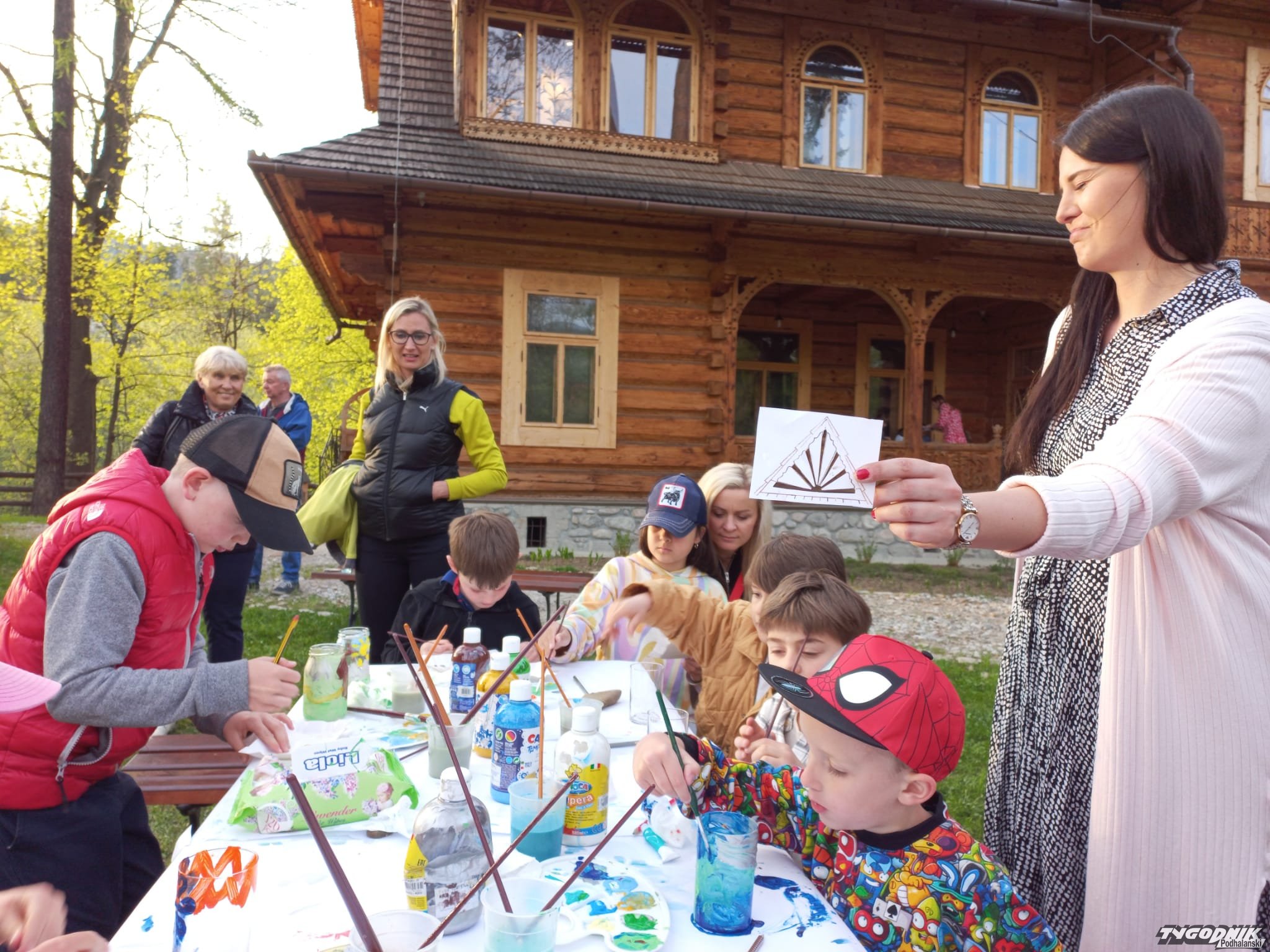 - Jeden projektował budynki w stylu polskich dworków, jak willa na Kozińcu, drugi startował w Rajdzie Tatrzańskim i projektował budynki w modernistycznym stylu, które nie zawsze zdobywały uznanie współczesnych - opowiadała o braciach Kopkowiczach Natalia Skiepko na spacerze architektonicznym. Wśród spacerowiczów obecne były wnuczki architektów. Przed willą Koliba już od 18 dzieci zainspirowane tatrzańskim pejzażem i elementami stylu zakopiańskiego tworzyły obrazy na plastrach drzewa i lampiony że słoików.