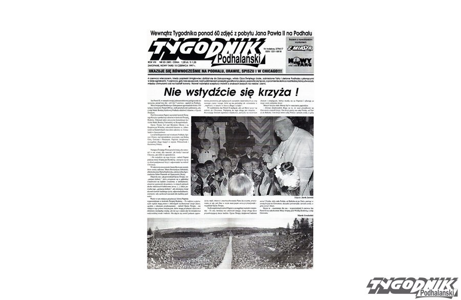 Nowy Targ, czerwiec 1979 r. Pierwsza wizyta Ojca Świętego w kraju. Mimo przeszkód, jakie piętrzyły komunistyczne władze, na spotkanie z Janem Pawłem II ze wszystkich stron ciągnęły tłumy. Wielu Słowaków nielegalnie przekraczało granicę. Mieszkańcy Ludźmierza przybyli z Matką Boską Ludźmierską. Miasto było pięknie udekorowane, chociaż komuniści zabronili ozdabiać sklepowe wystawy. Podczas Mszy św. na nowotarskim lotnisku porządku pilnowało 3 tys. górali. Byli też milicjanci, którzy mimo woli uczestniczyli w nabożeństwie. Gdy na Podniesienie wszyscy uklękli, jakiś góral, widząc stojąca grupę milicjantów, huknął do nich: „Klękać!”. I wszyscy, jak na komendę, uklękli. Zaraz po Mszy św., gdy helikopter z Janem Pawłem II na pokładzie odleciał, nadciągnęła burza z piorunami. W tym samym czasie wojskowy dźwig zaczął rozbierać papieski ołtarz, aby nie został po nim ślad.