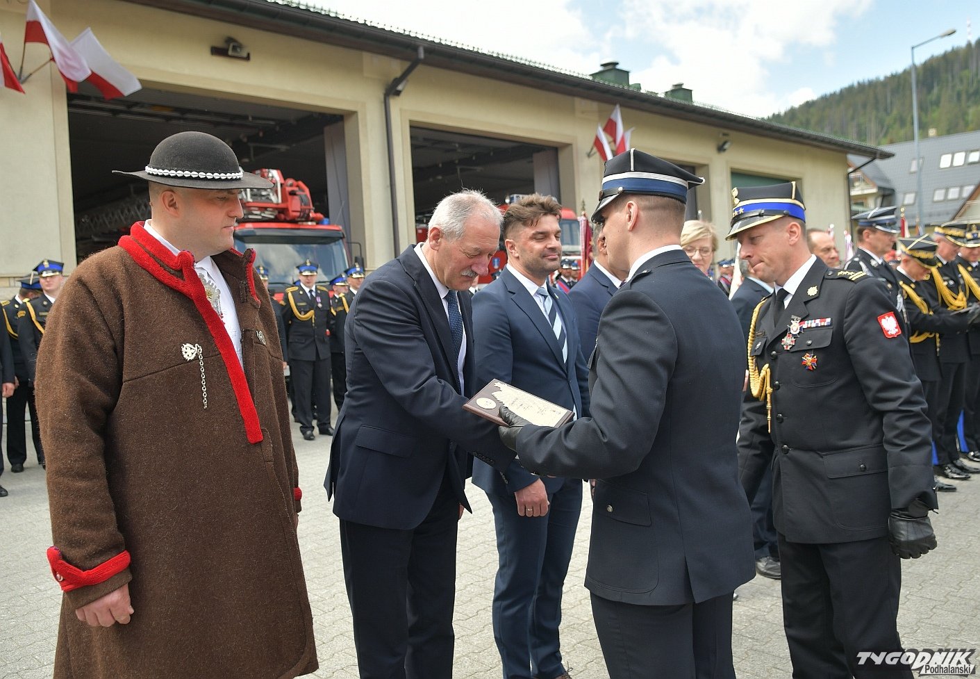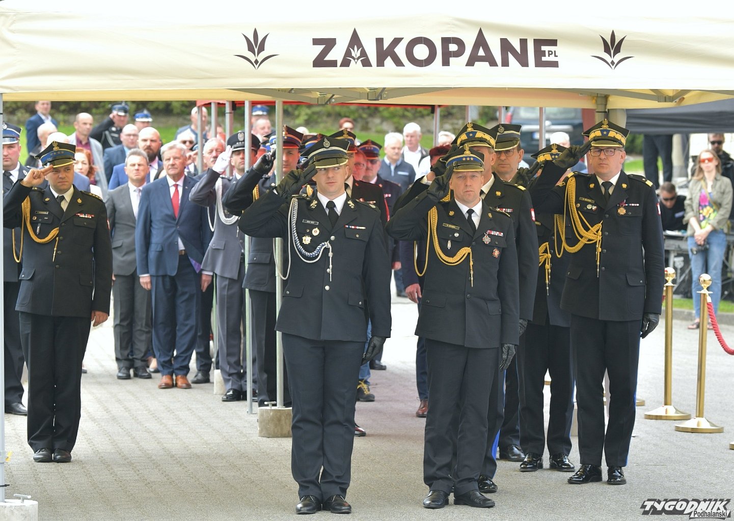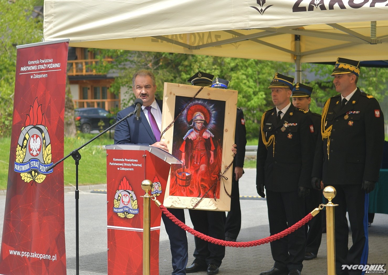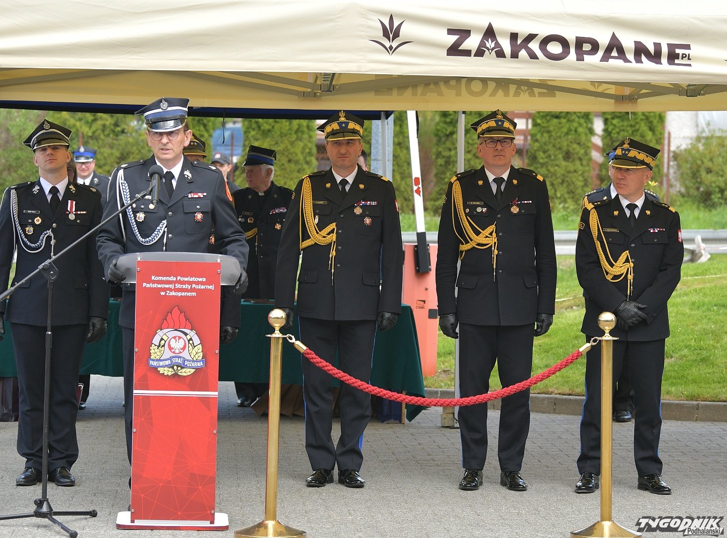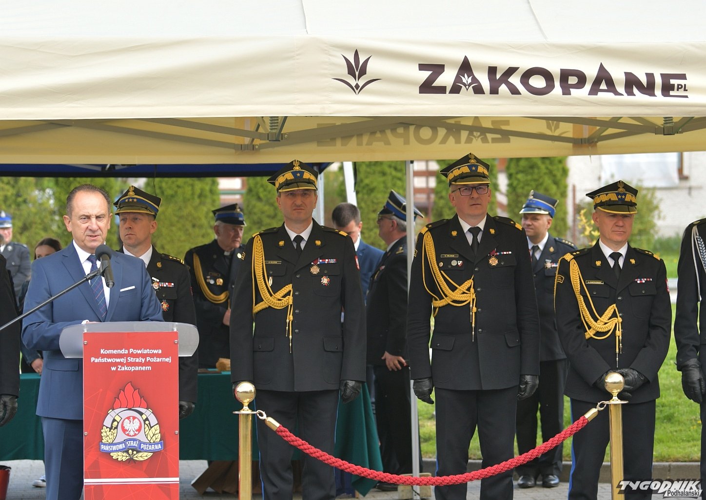 Gospodarz uroczystości, Komendant Powiatowy Państwowej Straży Pożarnej w Zakopanem st. bryg. Grzegorz Worwa przywitał gości: prezesa Zarządu Oddziału Wojewódzkiego Związku OSP RP, a zarazem posła na Sejm RP, Sekretarza Stanu w Ministerstwie Klimatu i Środowiska Edwarda Siarkę, posła na Sejm RP, Sekretarza Stanu w Ministerstwie Sportu i Turystyki Andrzeja Guta-Mostowego, komendanta głównego Państwowej Straży Pożarnej generała brygadiera Andrzeja Bartkowiaka oraz jego zastępcę nadbrygadiera Krzysztofa Hejduka, małopolskiego komendanta wojewódzkiego Państwowej Straży Pożarnej nadbrygadiera Piotra Filipka, wiceprzewodniczącego Sejmiku Województwa Małopolskiego Jana Piczurę oraz samorządowców: wicestarostę tatrzańskiego Władysława Filara, burmistrza Zakopanego Leszka Dorulę, wójta gminy Poronin Anitę Żegleń, wójta gminy Kościelisko Romana Krupę, wójta gminy Białego Dunajca Jacka Nowaka.
