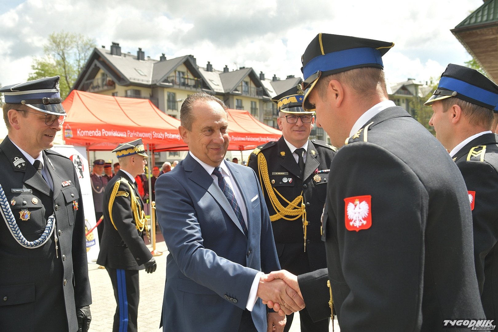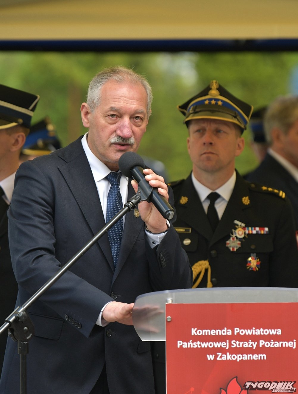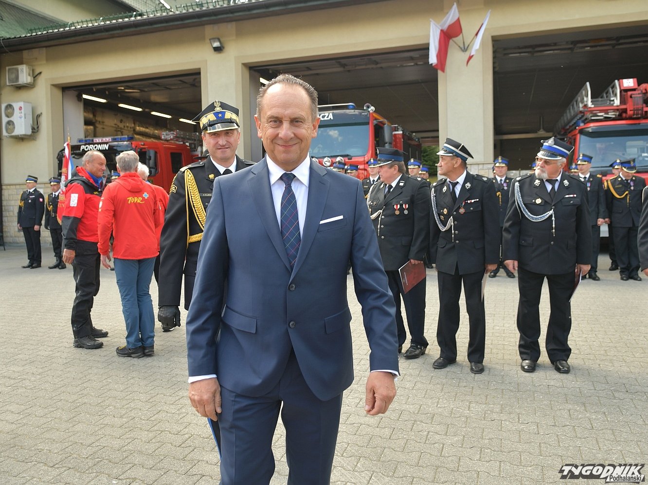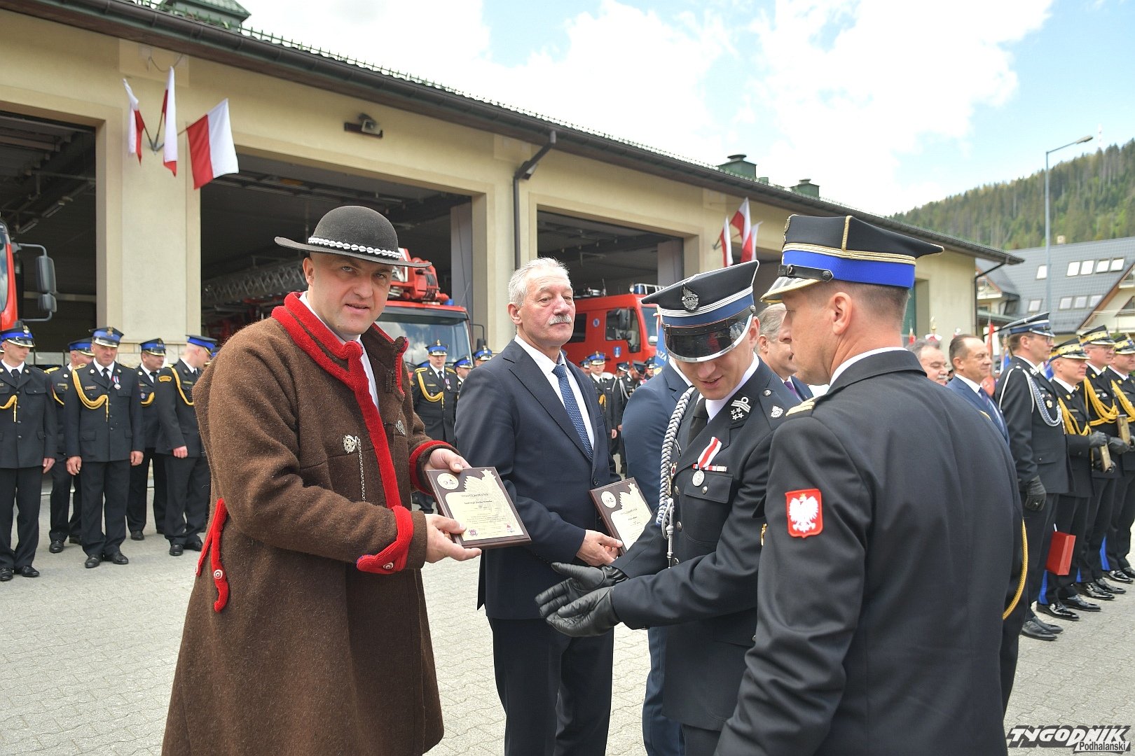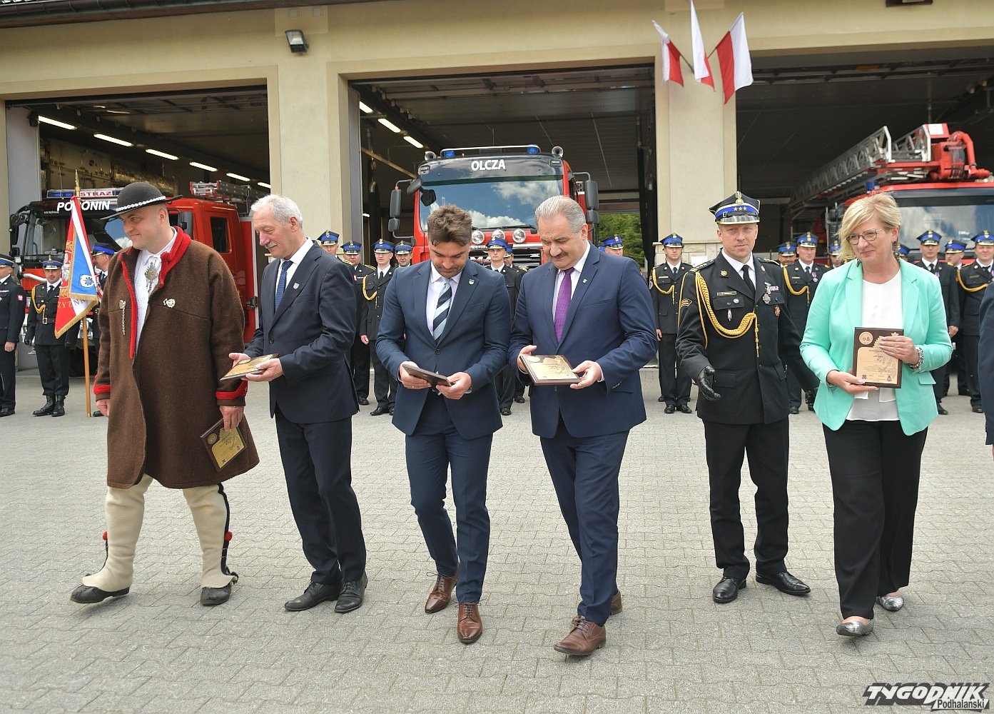 Gospodarz uroczystości, Komendant Powiatowy Państwowej Straży Pożarnej w Zakopanem st. bryg. Grzegorz Worwa przywitał gości: prezesa Zarządu Oddziału Wojewódzkiego Związku OSP RP, a zarazem posła na Sejm RP, Sekretarza Stanu w Ministerstwie Klimatu i Środowiska Edwarda Siarkę, posła na Sejm RP, Sekretarza Stanu w Ministerstwie Sportu i Turystyki Andrzeja Guta-Mostowego, komendanta głównego Państwowej Straży Pożarnej generała brygadiera Andrzeja Bartkowiaka oraz jego zastępcę nadbrygadiera Krzysztofa Hejduka, małopolskiego komendanta wojewódzkiego Państwowej Straży Pożarnej nadbrygadiera Piotra Filipka, wiceprzewodniczącego Sejmiku Województwa Małopolskiego Jana Piczurę oraz samorządowców: wicestarostę tatrzańskiego Władysława Filara, burmistrza Zakopanego Leszka Dorulę, wójta gminy Poronin Anitę Żegleń, wójta gminy Kościelisko Romana Krupę, wójta gminy Białego Dunajca Jacka Nowaka.
