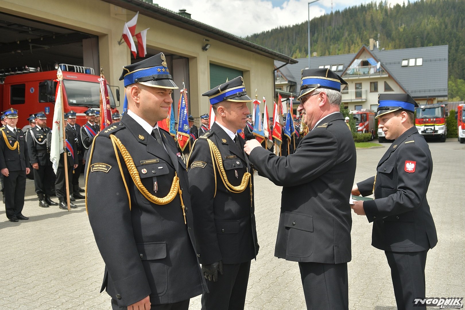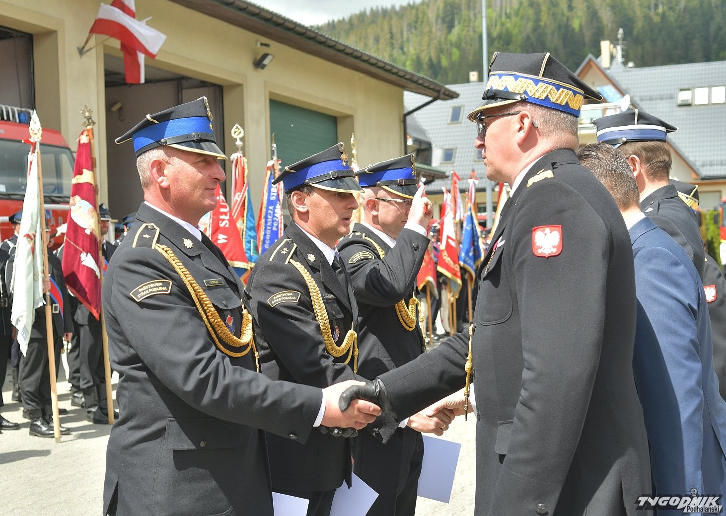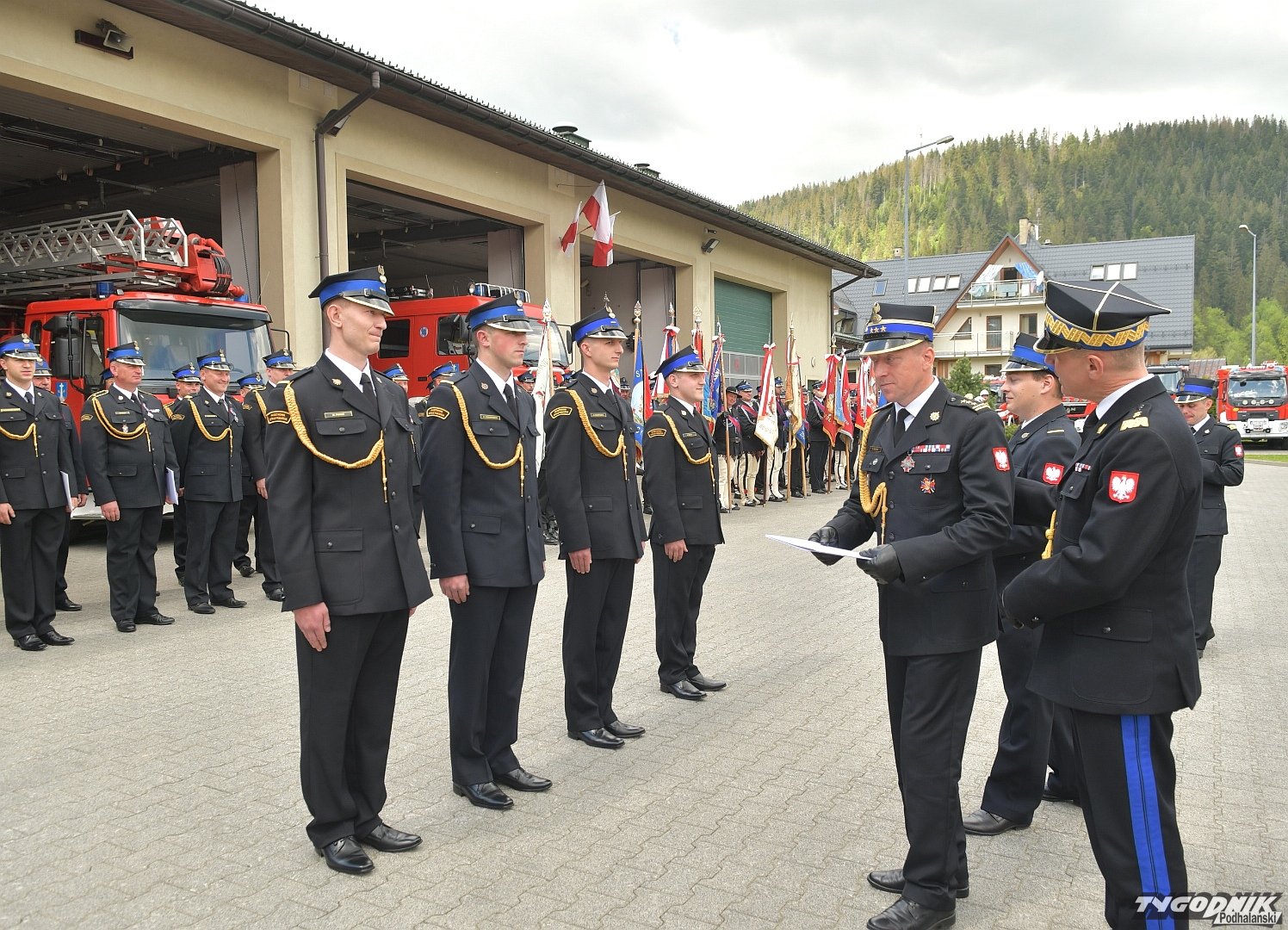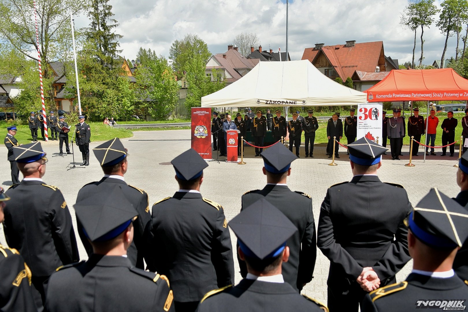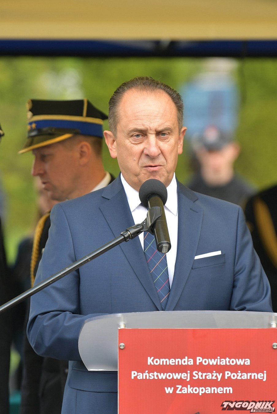Gospodarz uroczystości, Komendant Powiatowy Państwowej Straży Pożarnej w Zakopanem st. bryg. Grzegorz Worwa przywitał gości: prezesa Zarządu Oddziału Wojewódzkiego Związku OSP RP, a zarazem posła na Sejm RP, Sekretarza Stanu w Ministerstwie Klimatu i Środowiska Edwarda Siarkę, posła na Sejm RP, Sekretarza Stanu w Ministerstwie Sportu i Turystyki Andrzeja Guta-Mostowego, komendanta głównego Państwowej Straży Pożarnej generała brygadiera Andrzeja Bartkowiaka oraz jego zastępcę nadbrygadiera Krzysztofa Hejduka, małopolskiego komendanta wojewódzkiego Państwowej Straży Pożarnej nadbrygadiera Piotra Filipka, wiceprzewodniczącego Sejmiku Województwa Małopolskiego Jana Piczurę oraz samorządowców: wicestarostę tatrzańskiego Władysława Filara, burmistrza Zakopanego Leszka Dorulę, wójta gminy Poronin Anitę Żegleń, wójta gminy Kościelisko Romana Krupę, wójta gminy Białego Dunajca Jacka Nowaka.