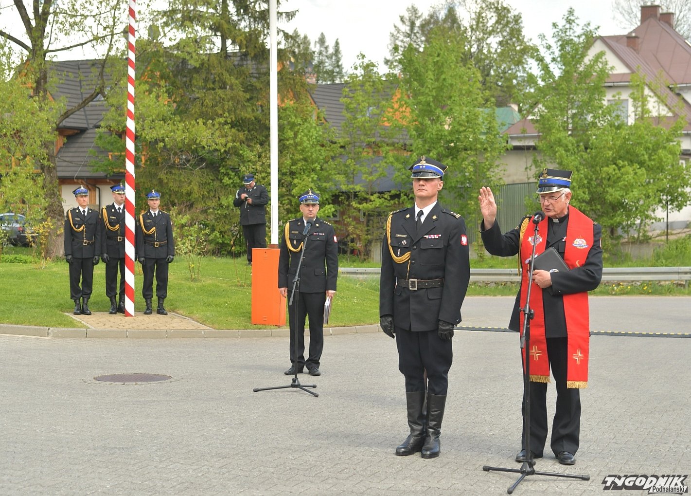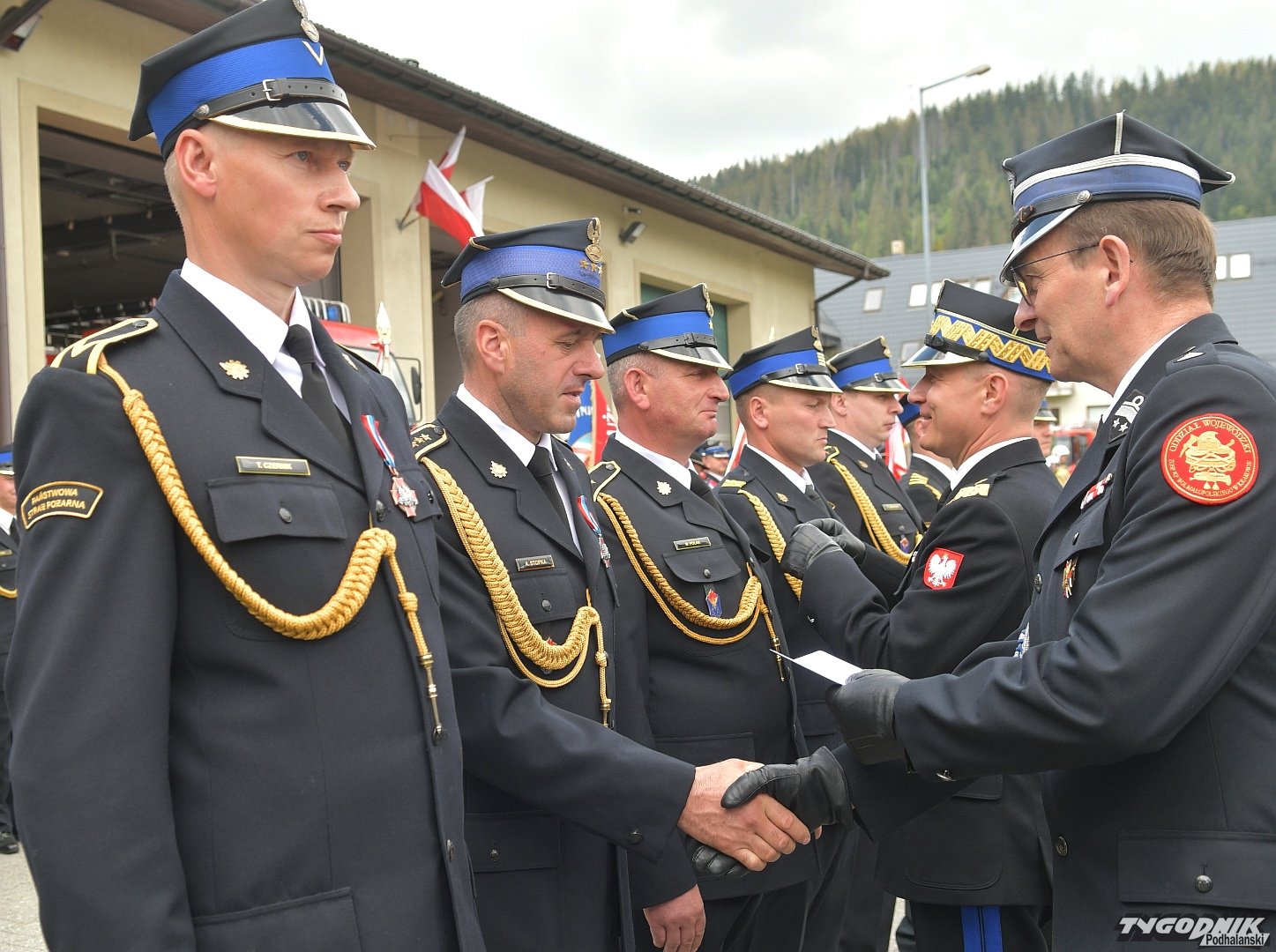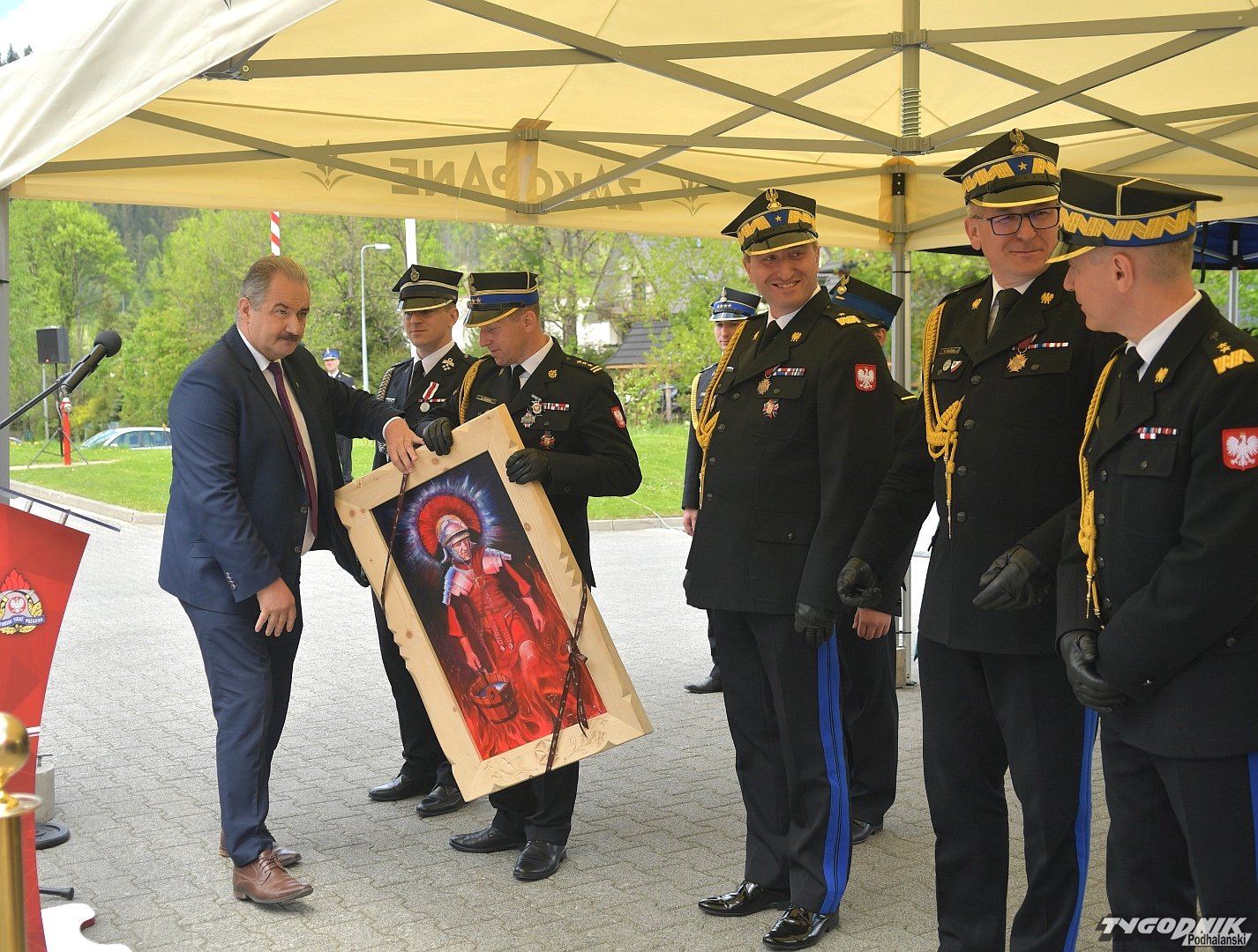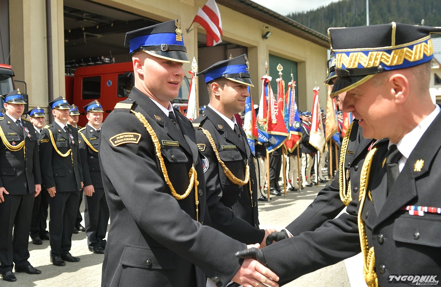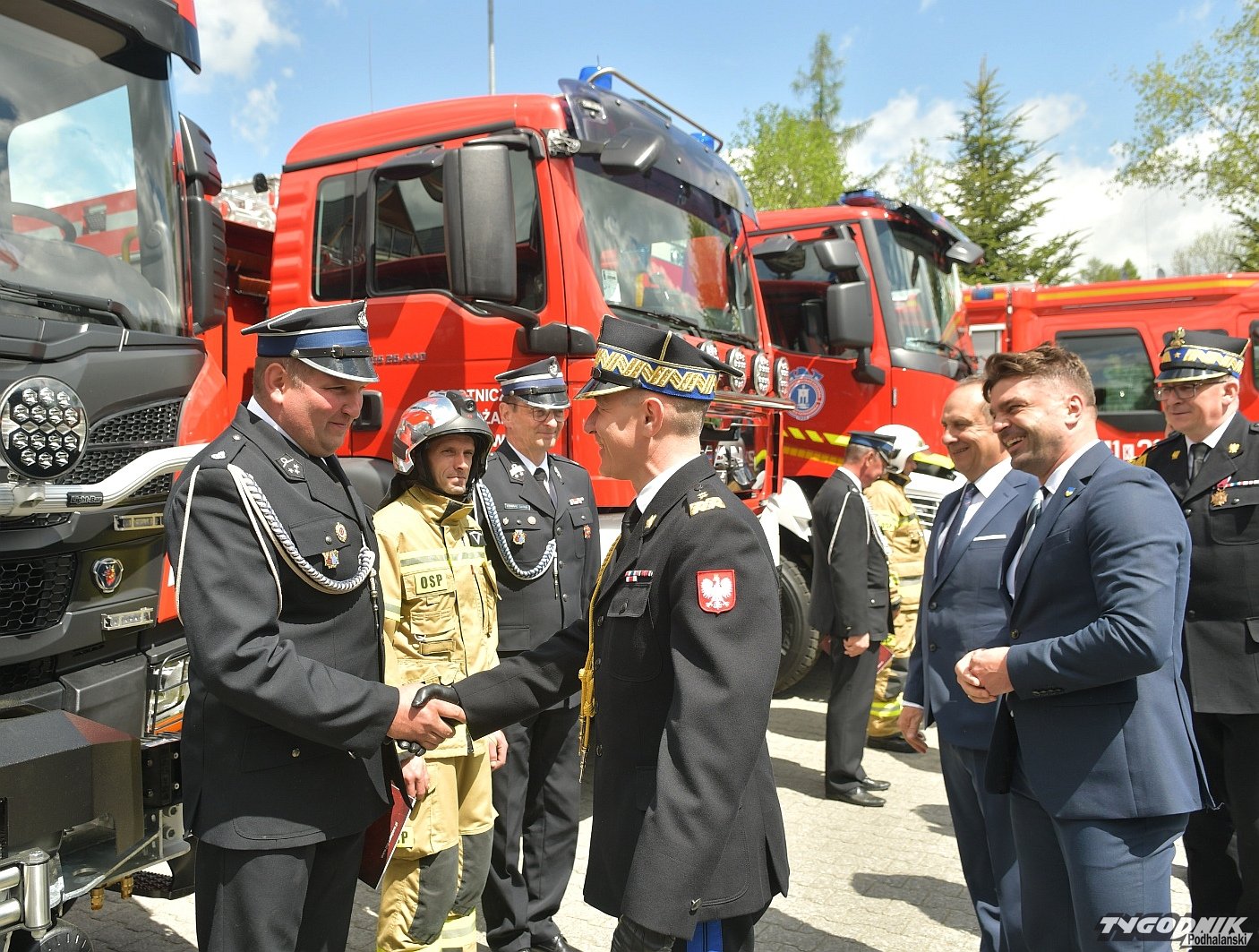 Gospodarz uroczystości, Komendant Powiatowy Państwowej Straży Pożarnej w Zakopanem st. bryg. Grzegorz Worwa przywitał gości: prezesa Zarządu Oddziału Wojewódzkiego Związku OSP RP, a zarazem posła na Sejm RP, Sekretarza Stanu w Ministerstwie Klimatu i Środowiska Edwarda Siarkę, posła na Sejm RP, Sekretarza Stanu w Ministerstwie Sportu i Turystyki Andrzeja Guta-Mostowego, komendanta głównego Państwowej Straży Pożarnej generała brygadiera Andrzeja Bartkowiaka oraz jego zastępcę nadbrygadiera Krzysztofa Hejduka, małopolskiego komendanta wojewódzkiego Państwowej Straży Pożarnej nadbrygadiera Piotra Filipka, wiceprzewodniczącego Sejmiku Województwa Małopolskiego Jana Piczurę oraz samorządowców: wicestarostę tatrzańskiego Władysława Filara, burmistrza Zakopanego Leszka Dorulę, wójta gminy Poronin Anitę Żegleń, wójta gminy Kościelisko Romana Krupę, wójta gminy Białego Dunajca Jacka Nowaka.