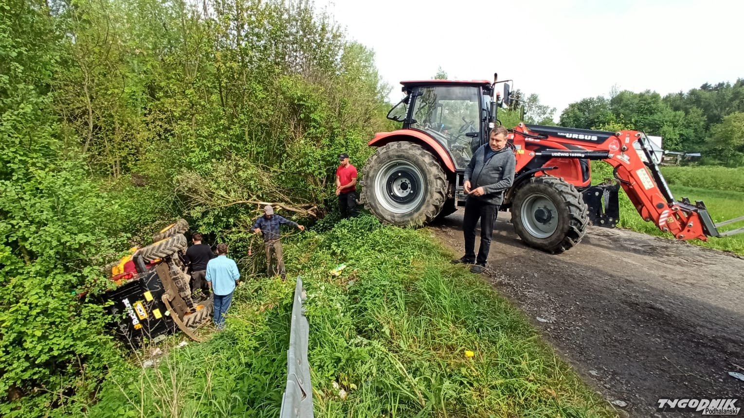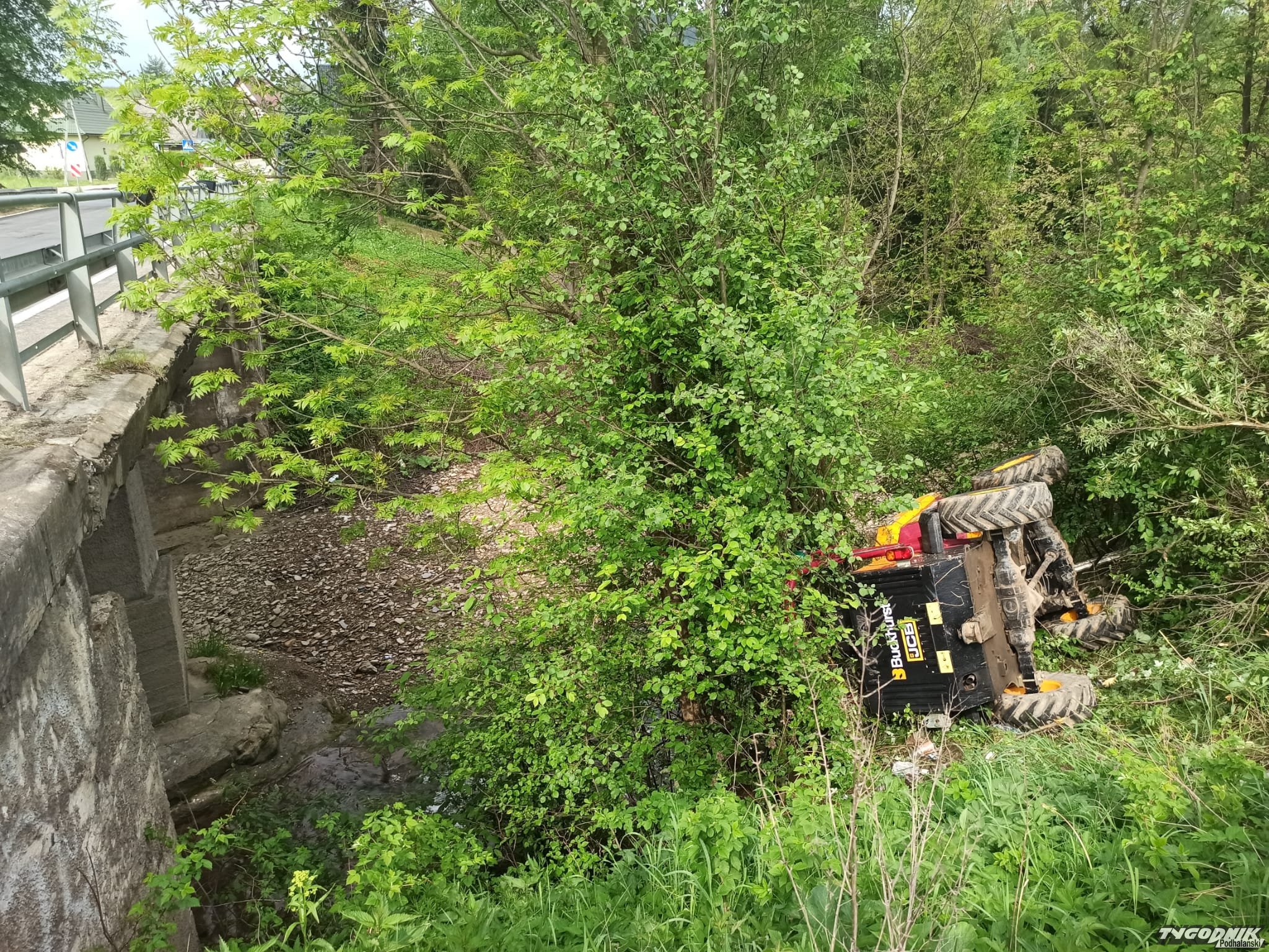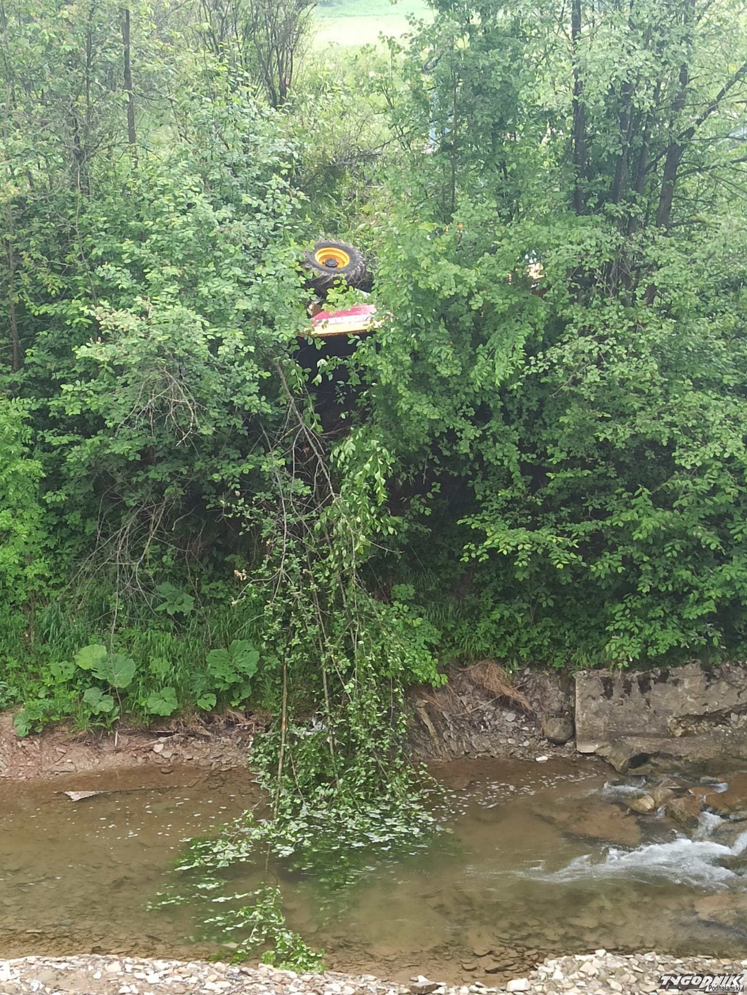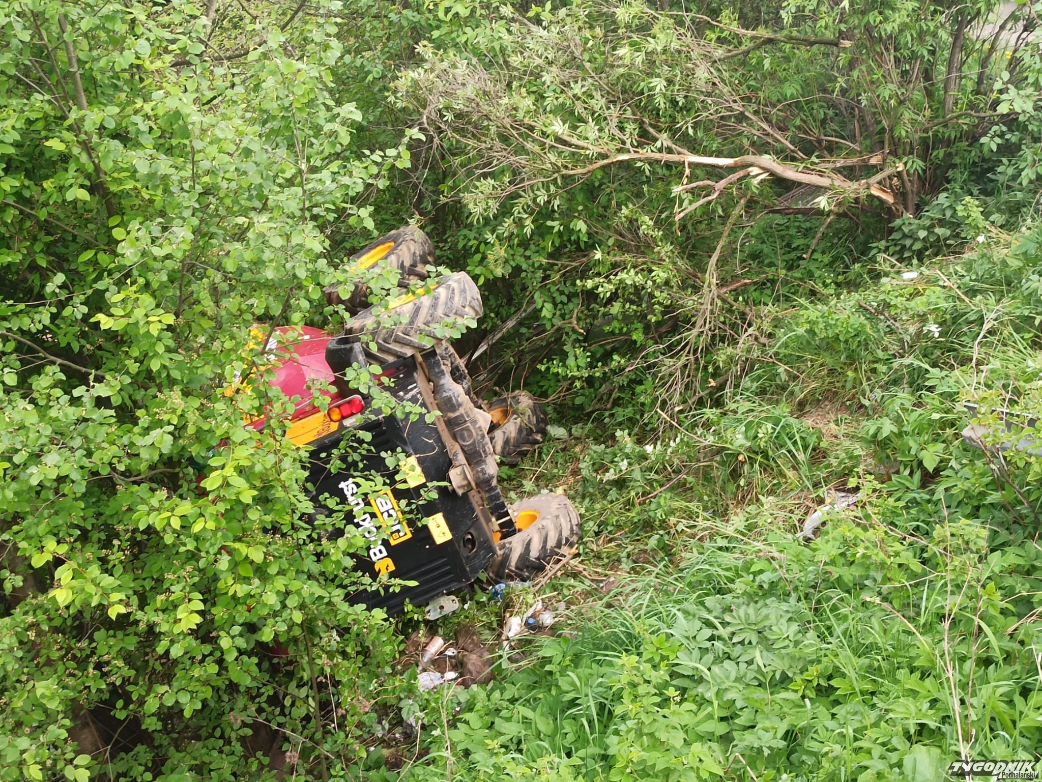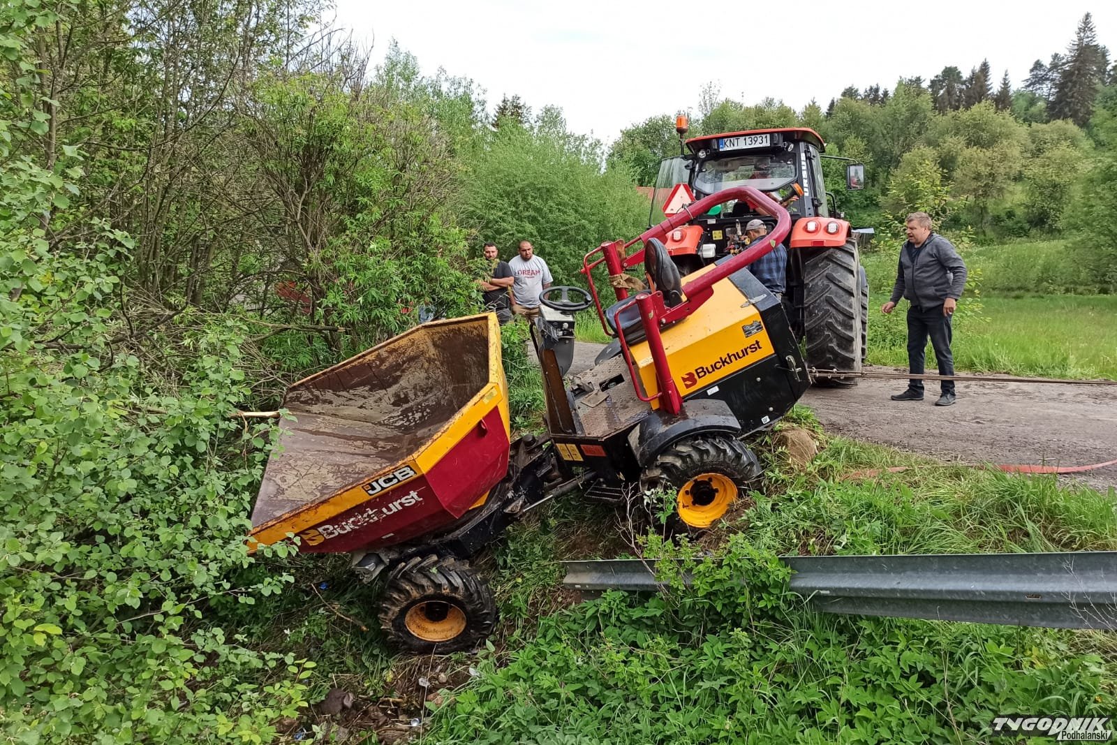 Jak mówią świadkowie, kierowca wozidła wymijał samochód osobowy. Kierowca zjechał na pobocze. Pojazd wyłamał barierki i stoczył się ze stromej skarpy. Na szczęście kierowcy nic się nie stało. Na miejscu są policjanci, którzy wyjaśniają okoliczności zdarzenia.