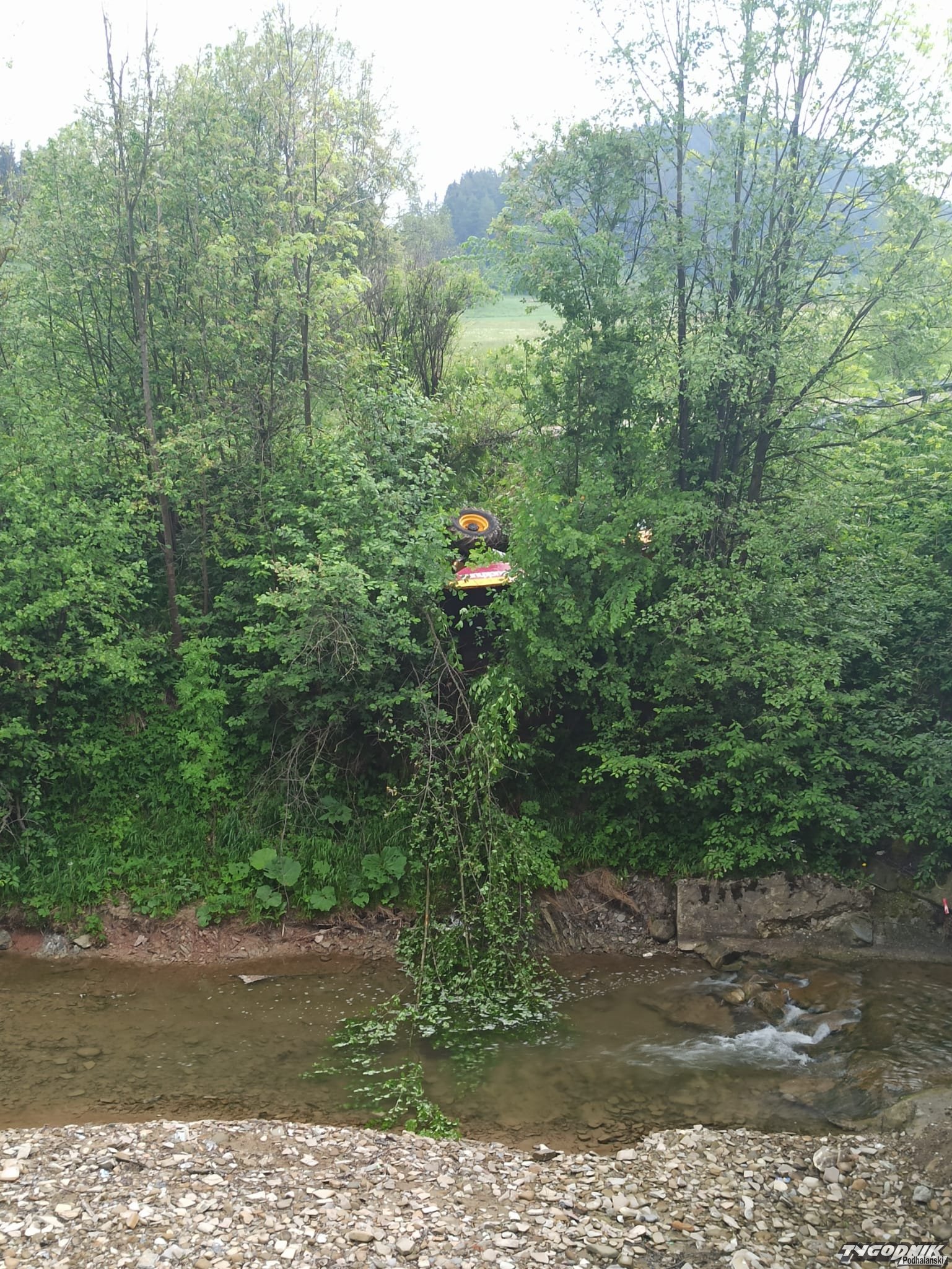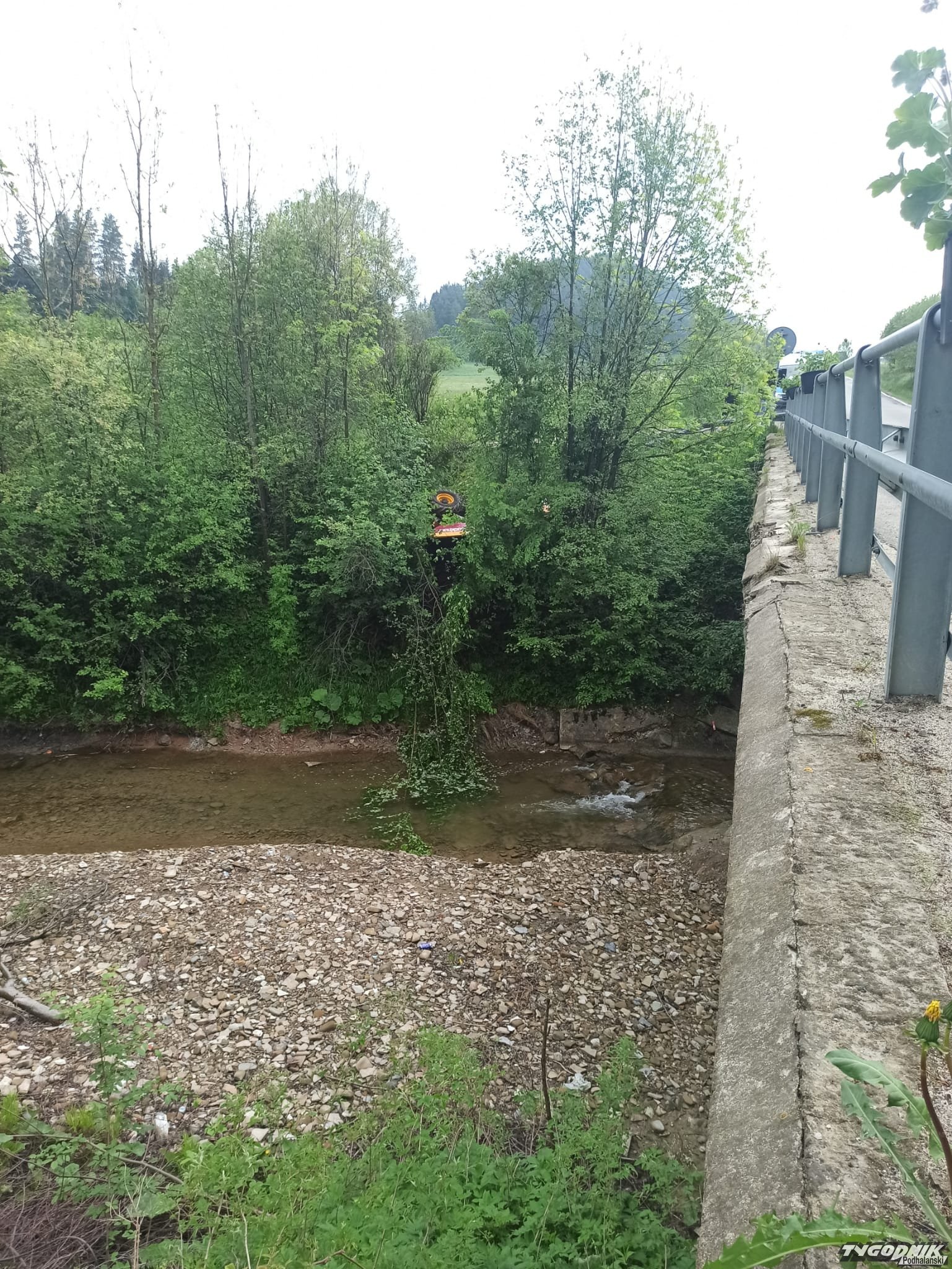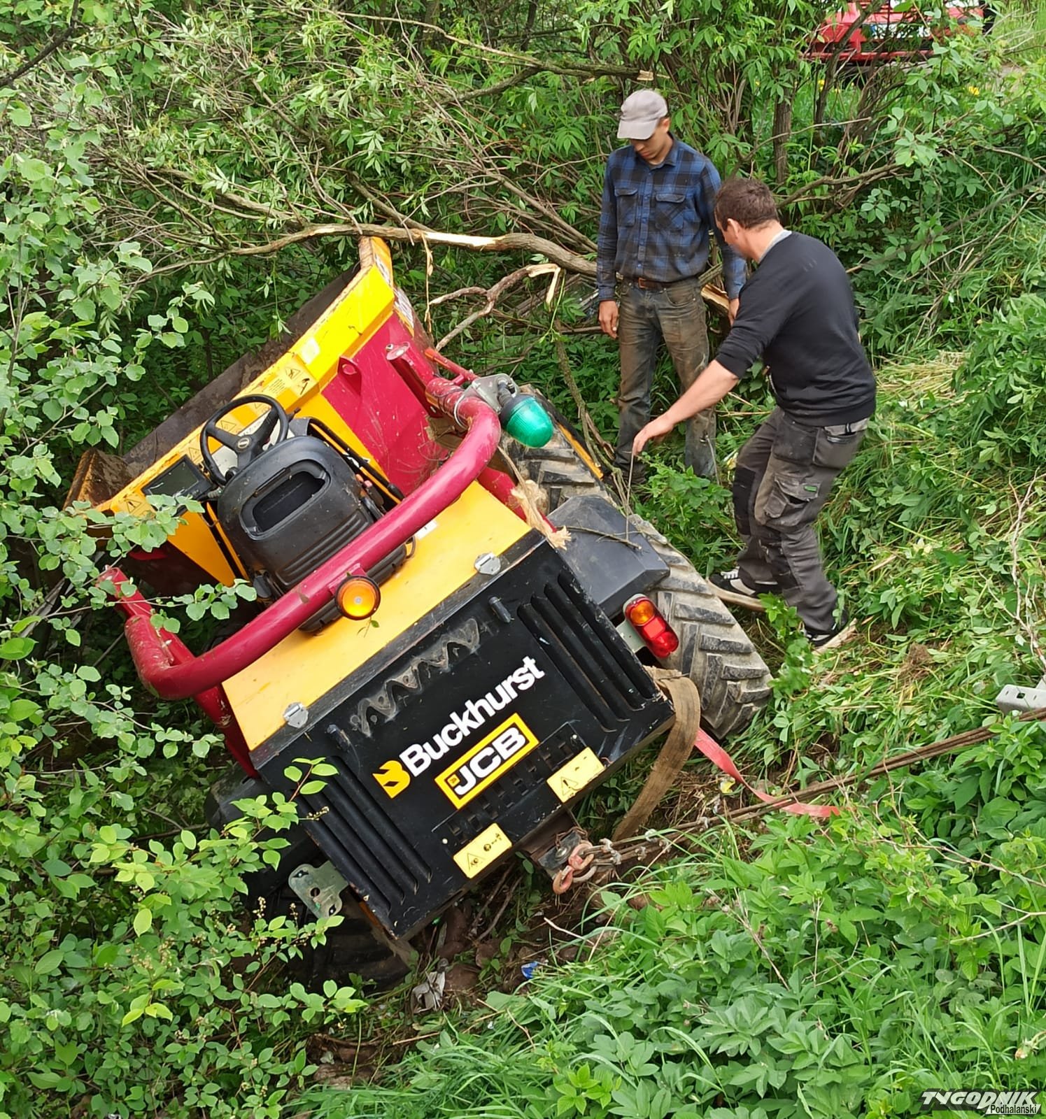 Na os. Zadział w Szaflarach wozidło budowlane wyłamało barierki i stoczyło się ze skarpy przy moście. Przed godz. 10 udało się je wyciągnąć na szosę.