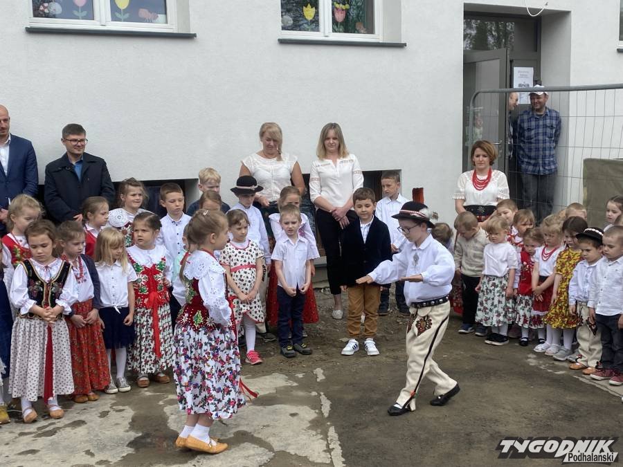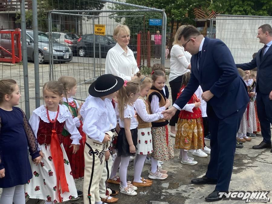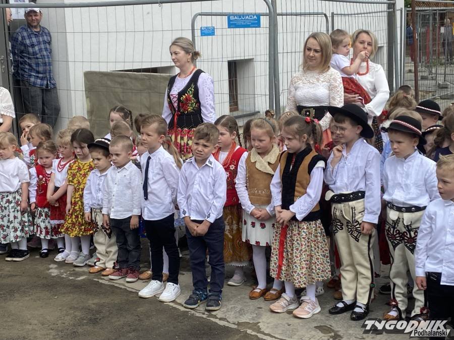 Była kapela, przedszkolaki w strojach regionalnych, kielnia i wiaderko z zaprawą.