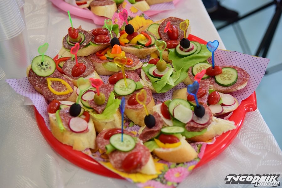 Wesołe świętowanie Dnia Mamy i Taty przypadło, oczywiście w czwartek 26 maja. Rodziców zaproszono na godzinę 14, bo zajęć było co niemiara. O poczęstunek dla tatusiów i mam zadbali dorośli. Ale kolorowe kanapeczki przyrządzone rączkami maluchów… – to był dopiero rarytas!