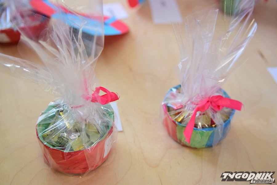 Prezenty rodzice dostali nawet dwa. Pierwszym było wspomniane już wyżej przedstawienie, a drugim przygotowane przez dzieci drobiazgi. I tak tatusiowie obdarowani zostali pięknymi laurkami z adnotacją "Dla Taty". A mamusie ślicznymi, własnoręcznie wypalonymi miseczkami.