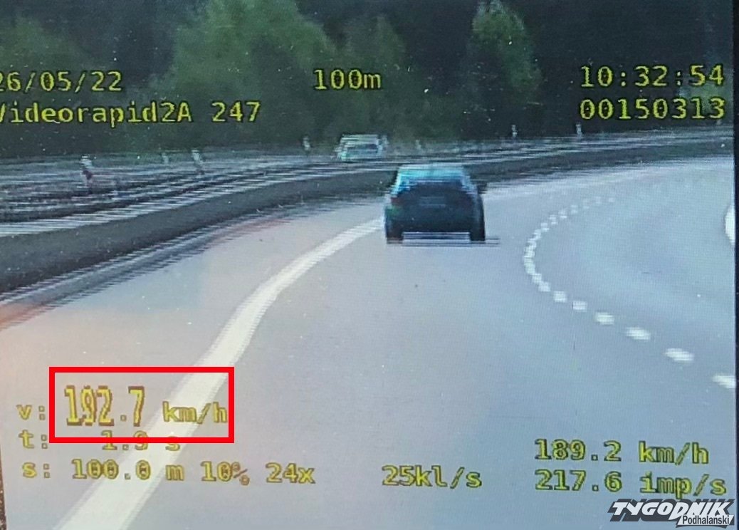 Policjanci z grupy Speed zatrzymali na zakopiance w Skomielnej Białej młodego kierowcę z powiatu tatrzańskiego, który zakopianka jechał 192 km na godz.