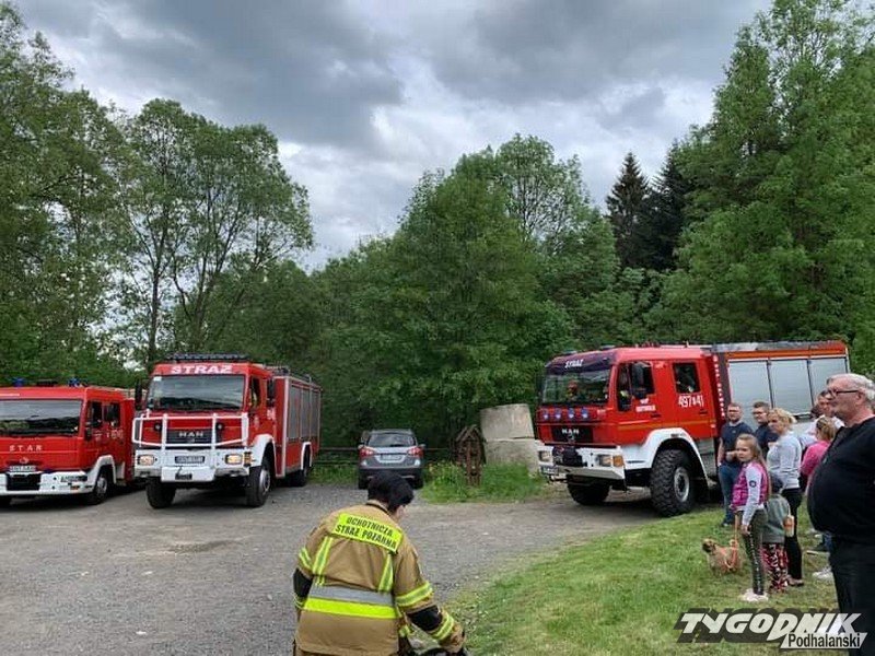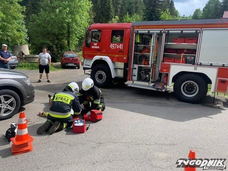 I nie tylko sikawki, trzeba było ratować mocno poszkodowanego w wypadku kierowcę rozbitego auta.