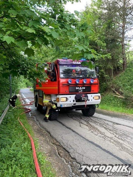 Strażacka akcja na drodze, sikawki poszły w ruch