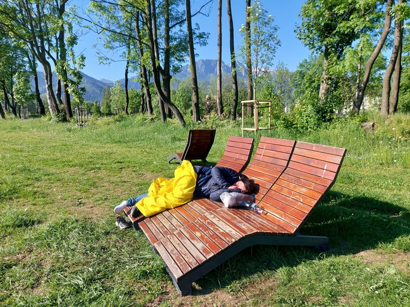 Policja i straż miejska nie będzie cię tu niepokoić. Dlatego jedni wybierają komfortowe, przestronne miejsca do leżenia, inni zadowalają się zwykłą ławką. Tu miejsca też jest dość. "Dobranoc, książę" - Giewont odbija echo ciepłych słów, wypowiedzianych w kultowym "Misiu".