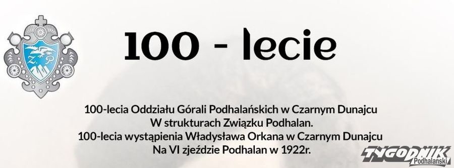 W najbliższą niedzielę 12.06 jubileusz 100-lecia Oddziału Górali Podhalańskich w strukturach Związku Podhalan i 100-lecia wystąpienia Władysława Orkana w trakcie 6. zjazdu Podhalan w Czarnym Dunajcu w 1922 roku.