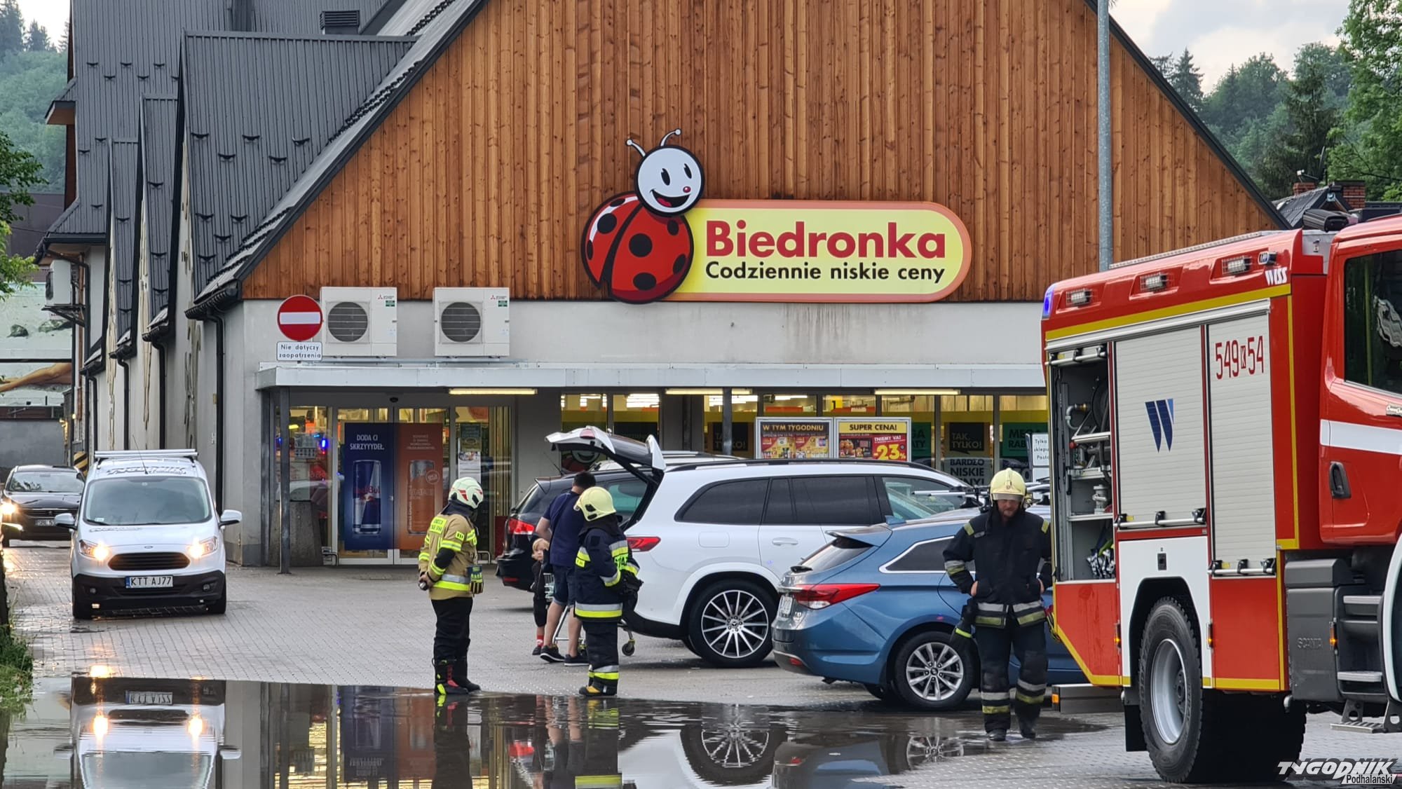 Ulewa zalała magazyny supermarketu.