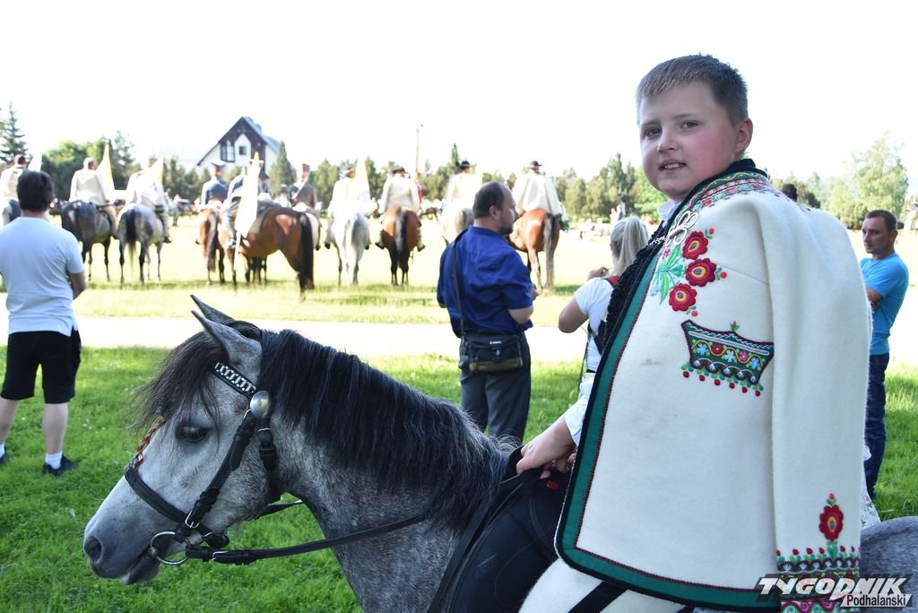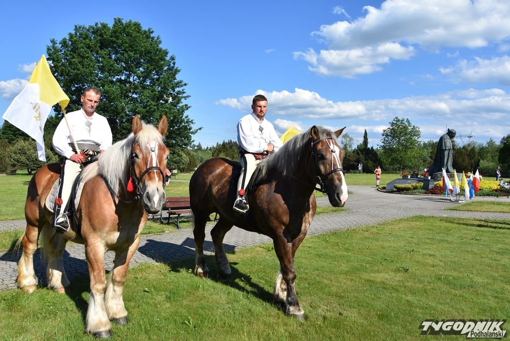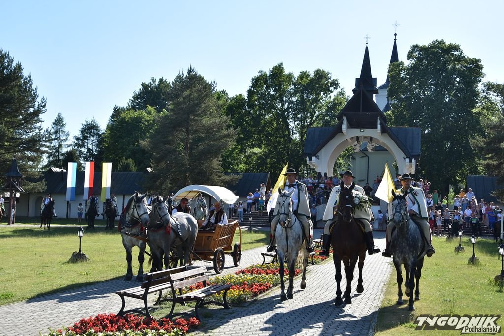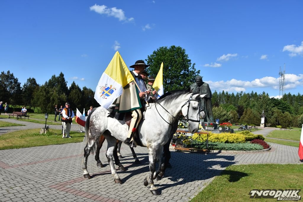 Blisko 90 jeźdźców z banderii konnej w strojach regionalnych przyjechało w niedzielę 12 czerwca do Ludźmierza na zakończenie obchodów 25. rocznicy pielgrzymki Jana Pawła II.