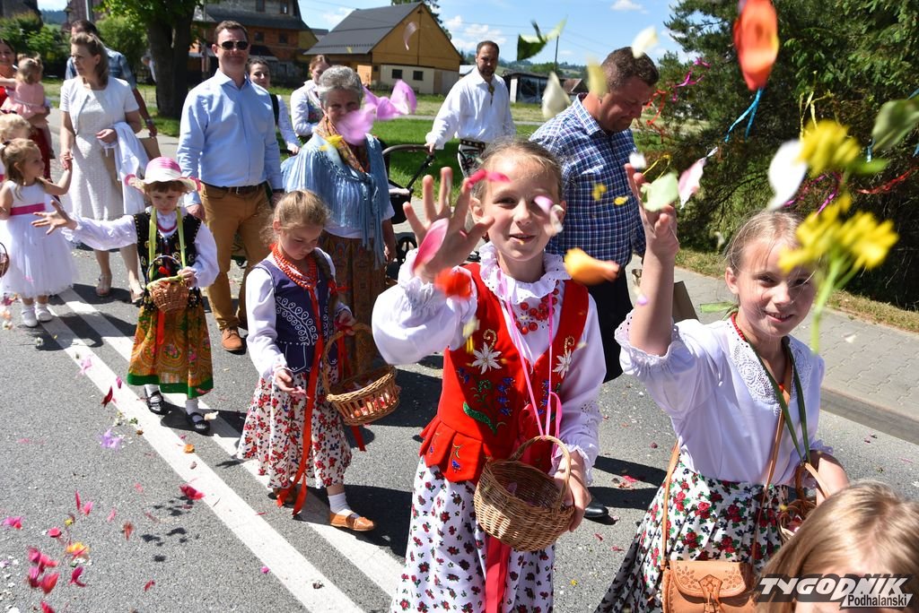 Zgodnie z tradycją górale z parafii w Miętustwie przeszli w procesji Bożego Ciała. Trasa od kilku lat wiedzie od kościoła do ronda - skrzyżowania na Ciche i Ratułów. -