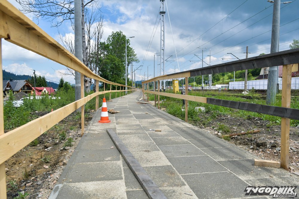 Przy torach w miejscu dawnej myjni pociągów powstały już dwa perony. Trwa układanie przejść dla pasażerów i łatanie dziur na dojazdowej drodze od strony Szymonów. Na razie nie wiadomo, gdzie dokładnie będą mogły dojeżdżać busy i auta odbierające pasażerów, ale wydaje się, że przybywający do Zakopanego pociągiem będą musieli z bagażami na piechotę pokonać przynajmniej kilkaset metrów.