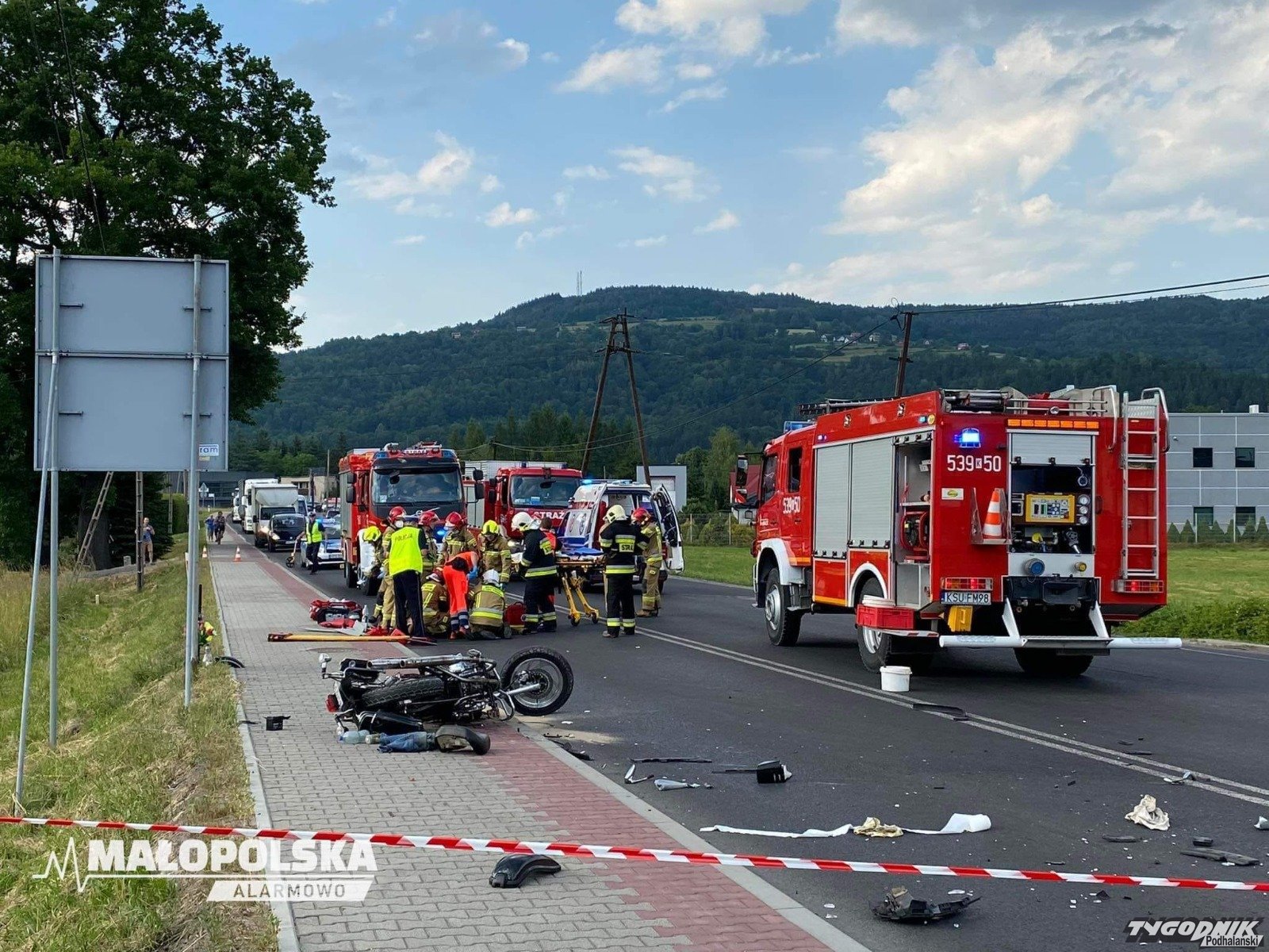 Poważny wypadek w Białce. Trwa akcja po zderzeniu motocykla z samochodem