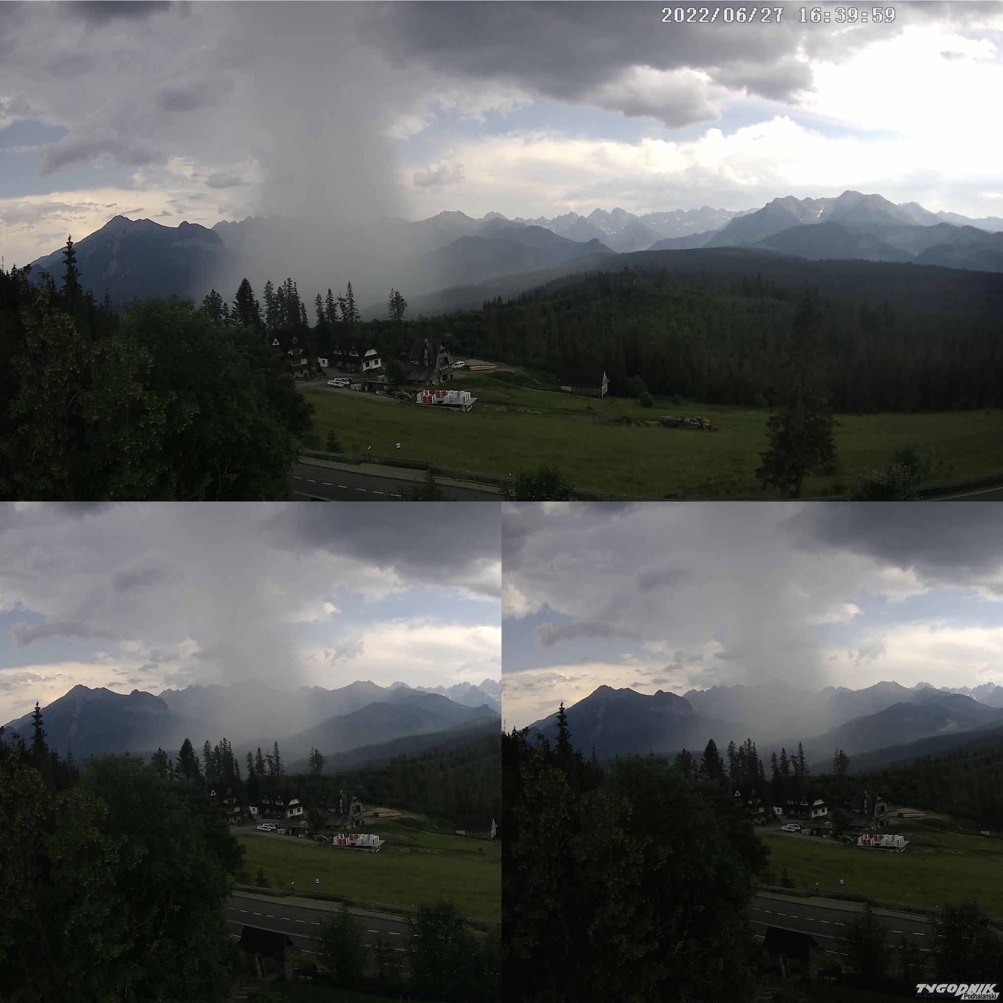 W Zakopanem mieliśmy dziś kilka minut opadów. To mogą być zjawiska bardzo lokalne, co pokazują te zdjęcia z kamery na Głodówce.