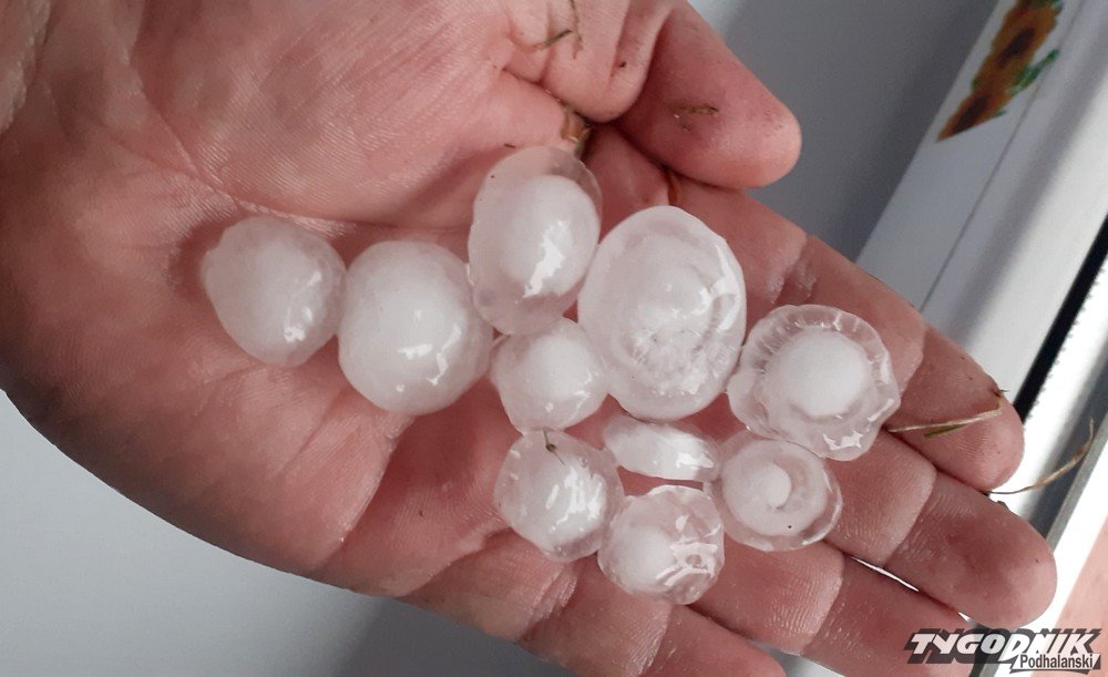 Miejscami padał grad o wielkości orzechów włoskich. Zdjęcie gradu nadesłała nam Czytelnik, Łukasz Niewiarowski - dziękujemy. Oprócz gradu intensywnie padał deszcz. Na filmie poniże ulica Ogrodowa.