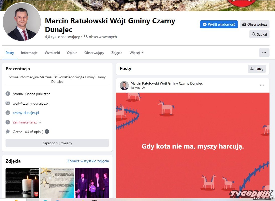 Marcin Ratułowski, wójt Czarnego Dunajca opublikował na Facebooku krótki wpis: gdy kota nie ma, myszy harcują. Najwyraźniej jest to nawiązanie do wczorajszej sesji Rady Gminy w Czarnym Dunajcu.