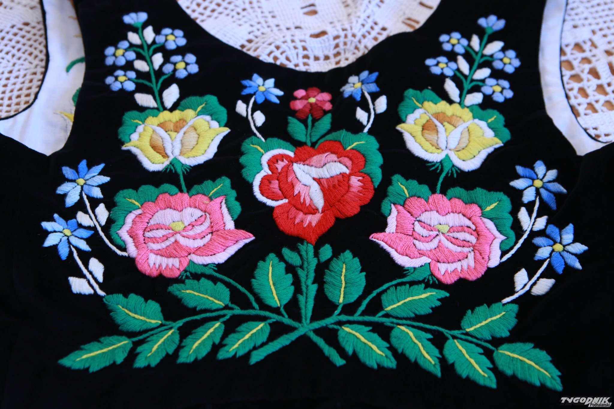 Zauroczona jest starymi wzorami na tylmanowskich odzieniach.