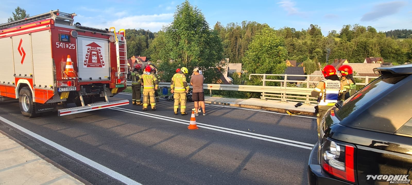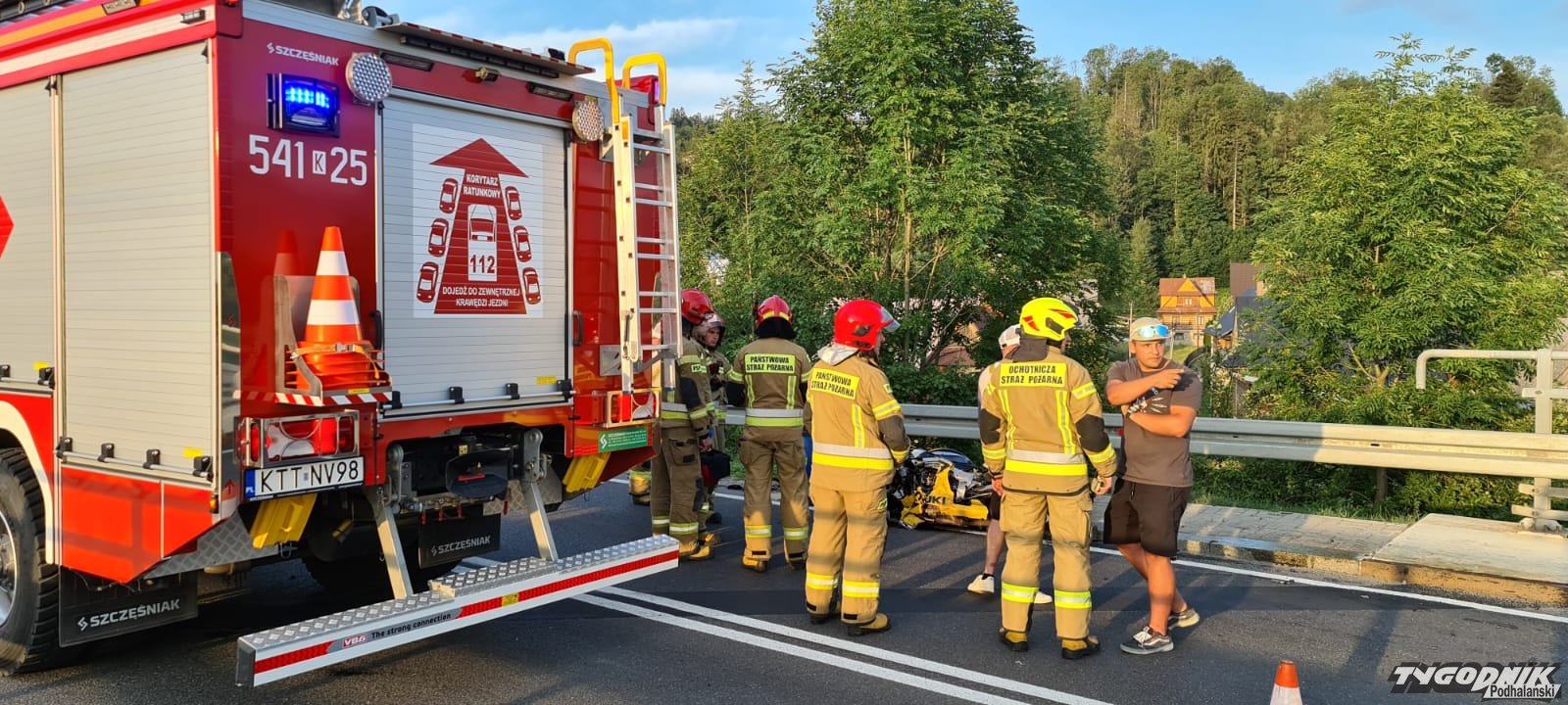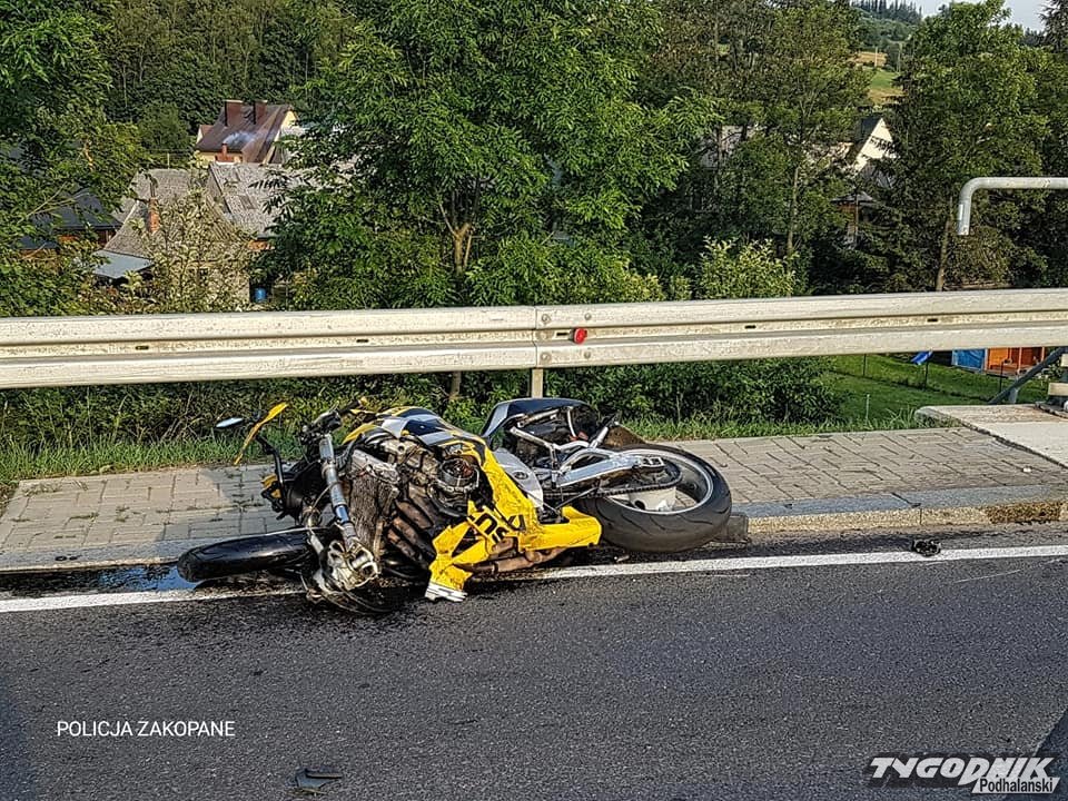 Czołowe zderzenie motocykla z osobówką w Białym Dunajcu. Zakopianka całkowicie zablokowana (ZDJĘCIA)
